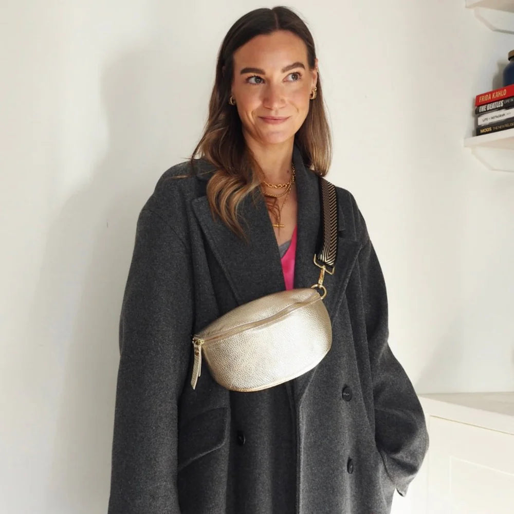 Experience effortless elegance with the Elie Beaumont Gold Large Slingbag, crafted from premium genuine leather. This compact yet spacious crossbody...