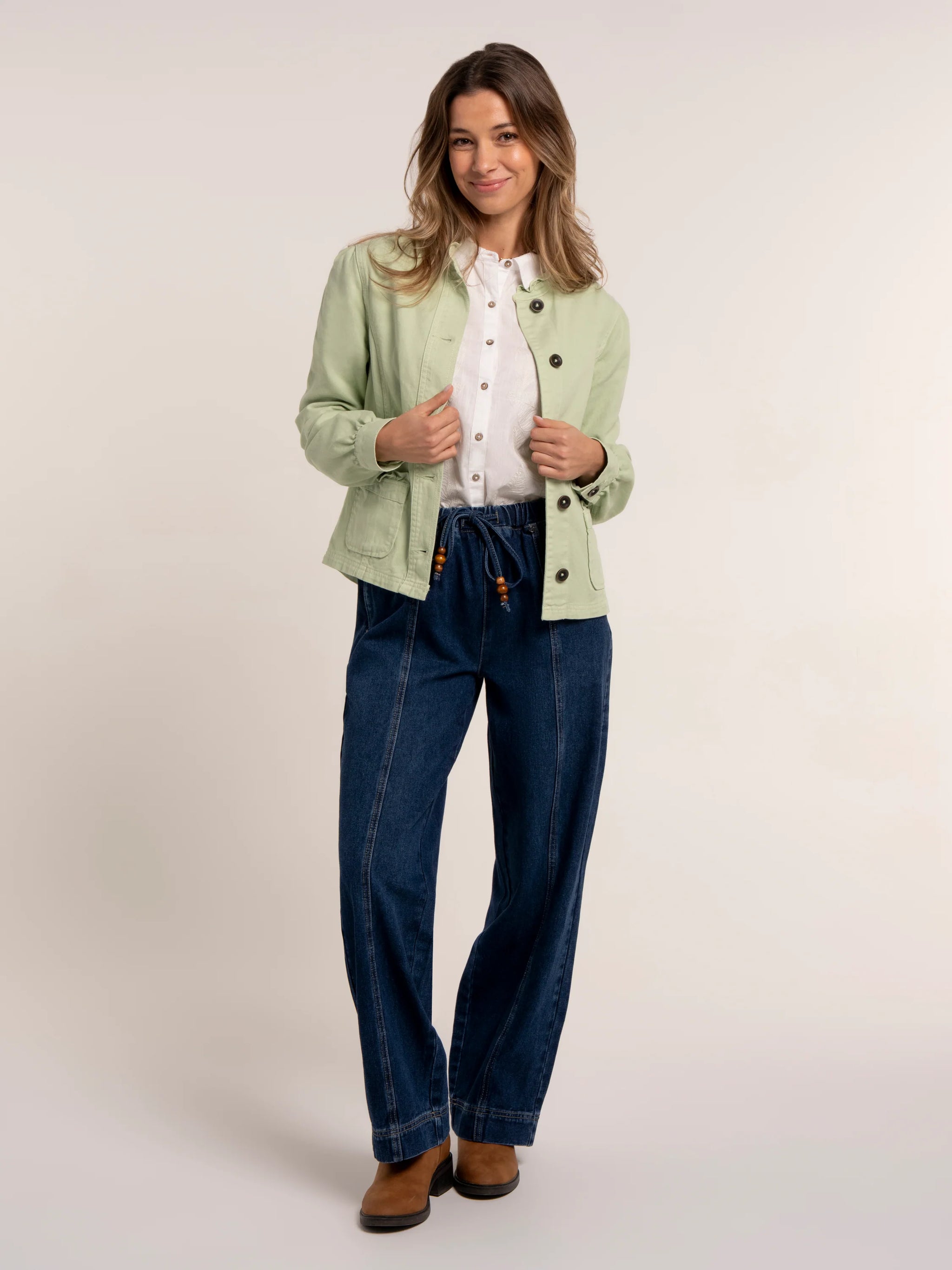 Introducing the Amalia Jacket—a charming layering piece that combines style with everyday practicality. This mid-weight twill jacket features a soft...