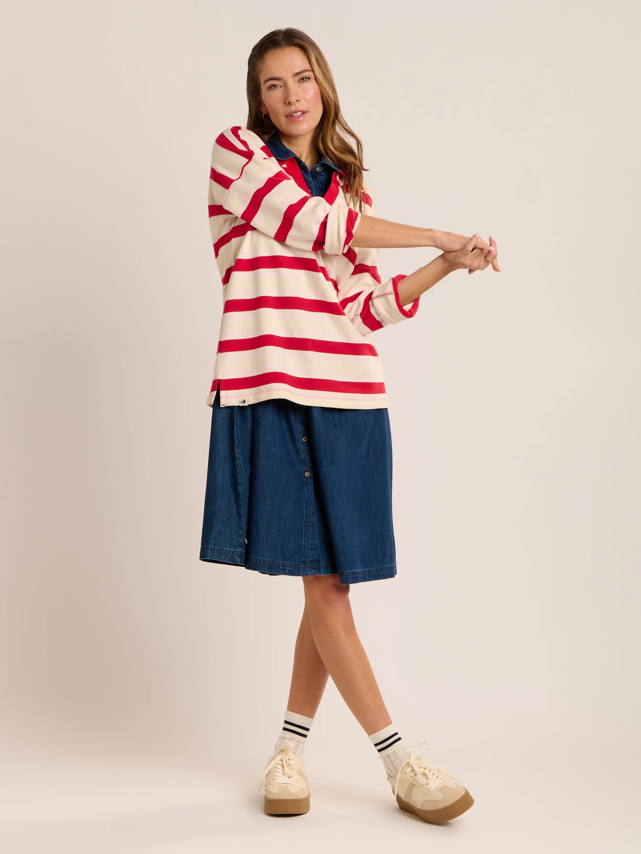 The Brakeburn Antonia is a versatile knee-length denim dress designed for effortless everyday style. Featuring a neatly fitted waist with...