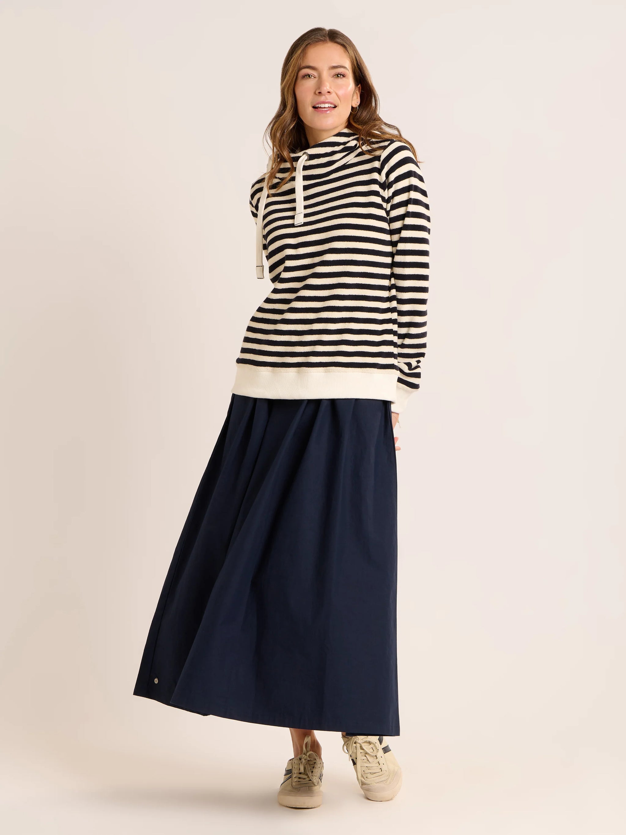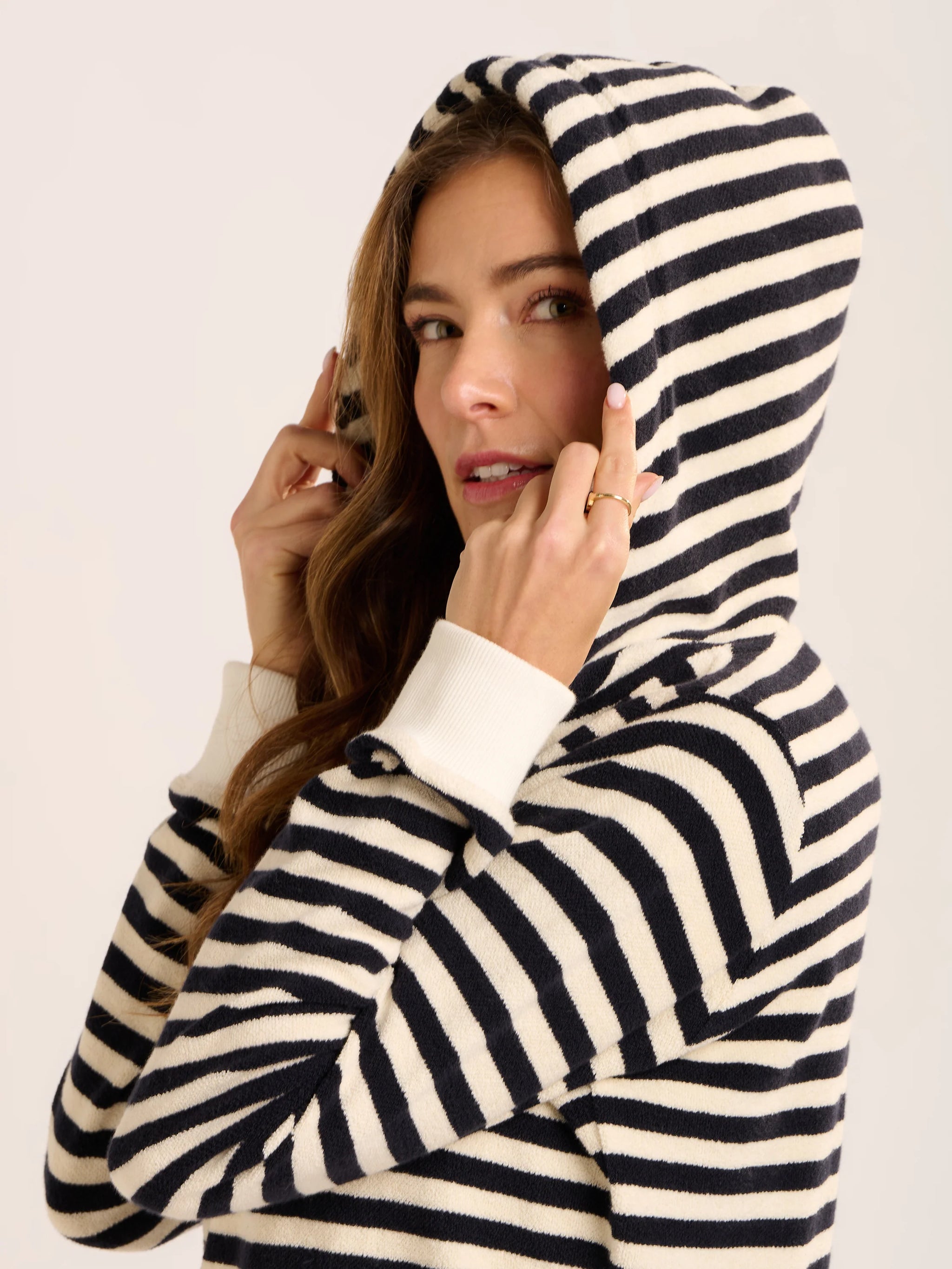 Master the art of effortless layering with the Caundle sweatshirt. Crafted from lightweight knitted stripe fabric, it's your go-to piece...