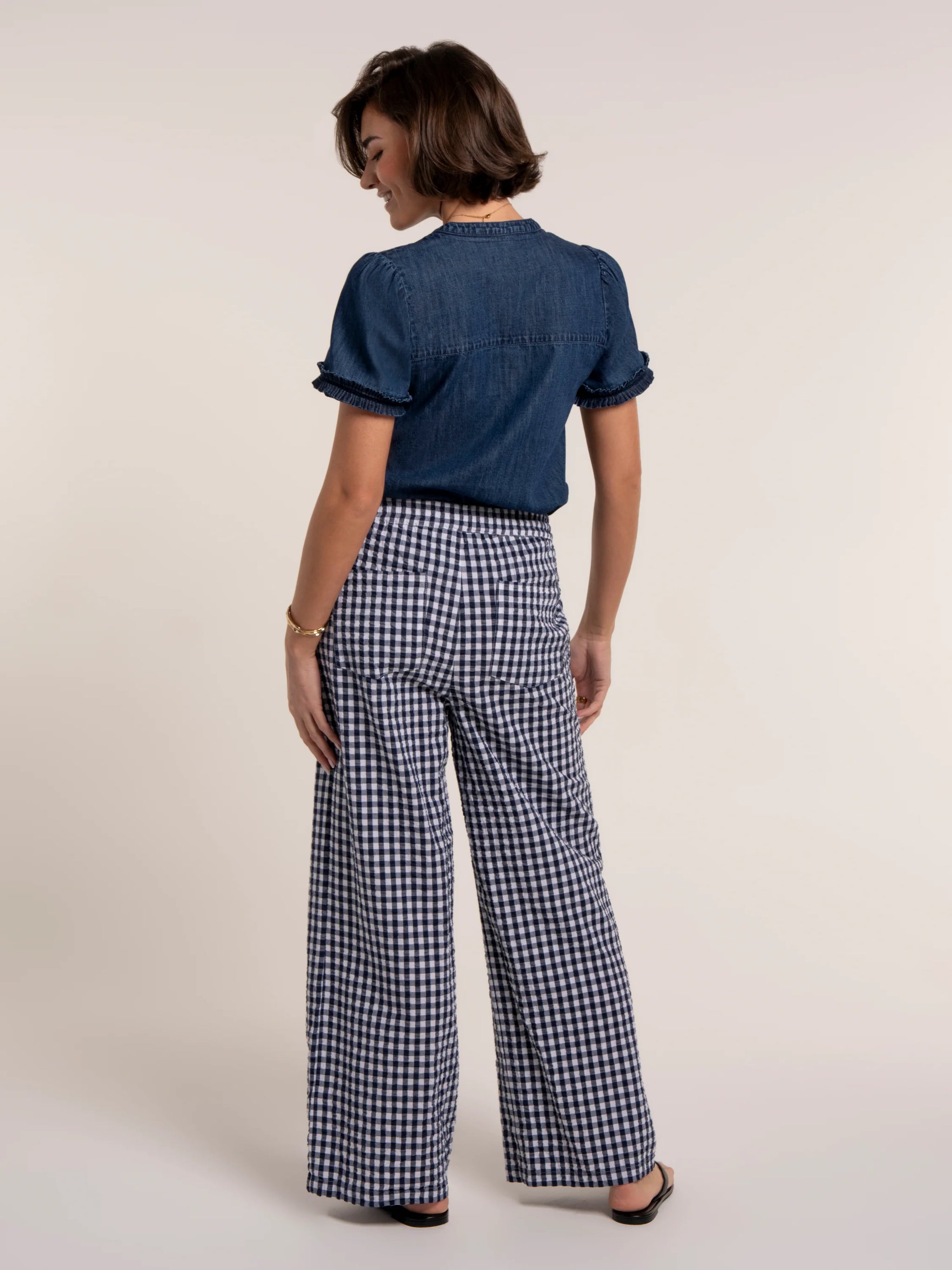 Lightweight textured gingham gives our Aitana Trousers that easy summer feel. Designed with straight wide legs and a relaxed fit,...