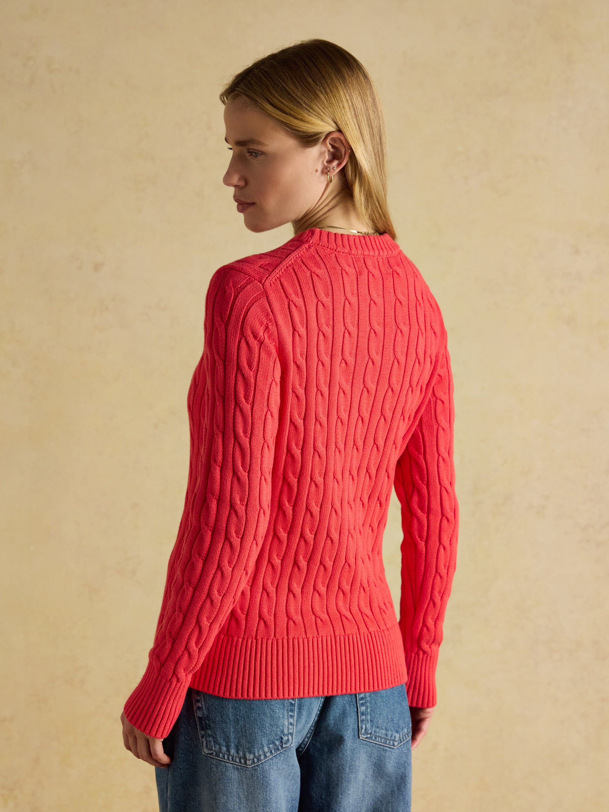 An absolute staple cable knit jumper in a classic, but refined, red colour. The piece is adorned with the iconic...
