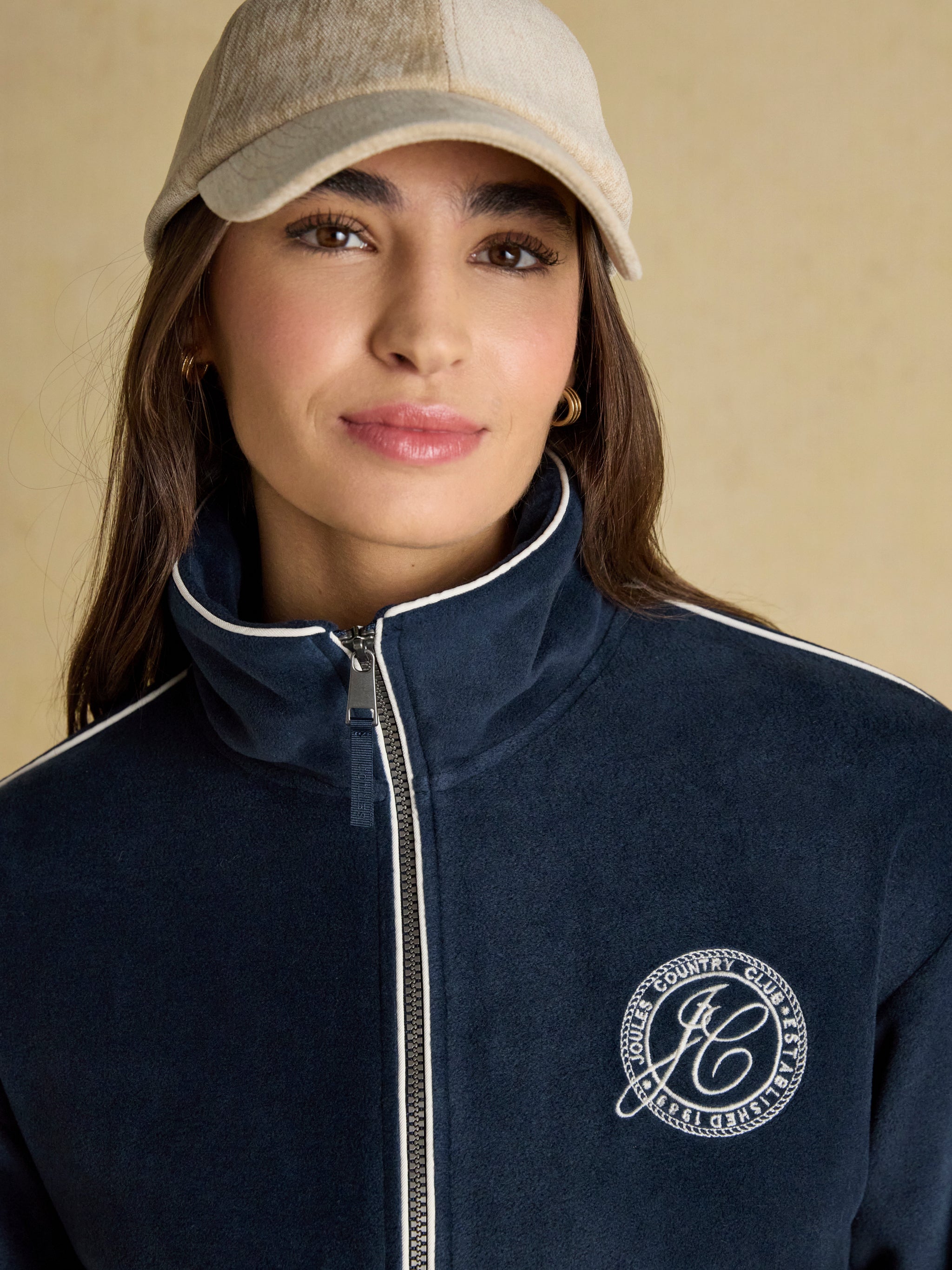 Explore a timeless classic in this navy Joules embroidered fleece, and unlock ultimate cosiness. It offers a full zip funnel...