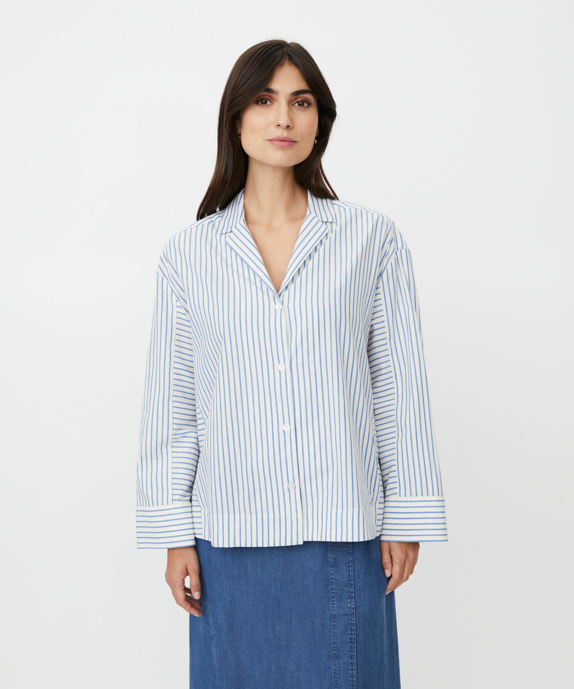 It's the small details that make the difference. This top in light, crinkled cotton offers a classic cut and simple...