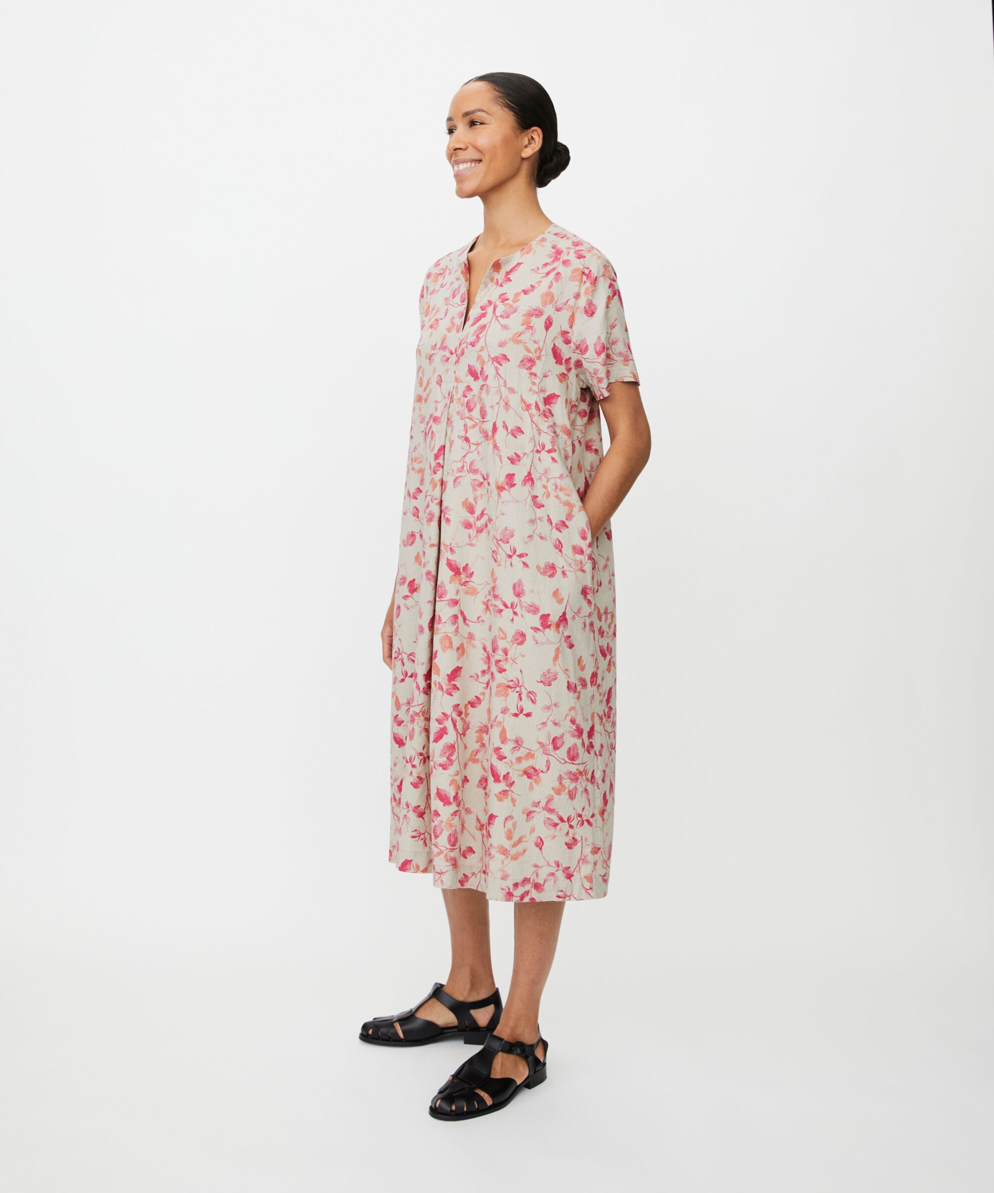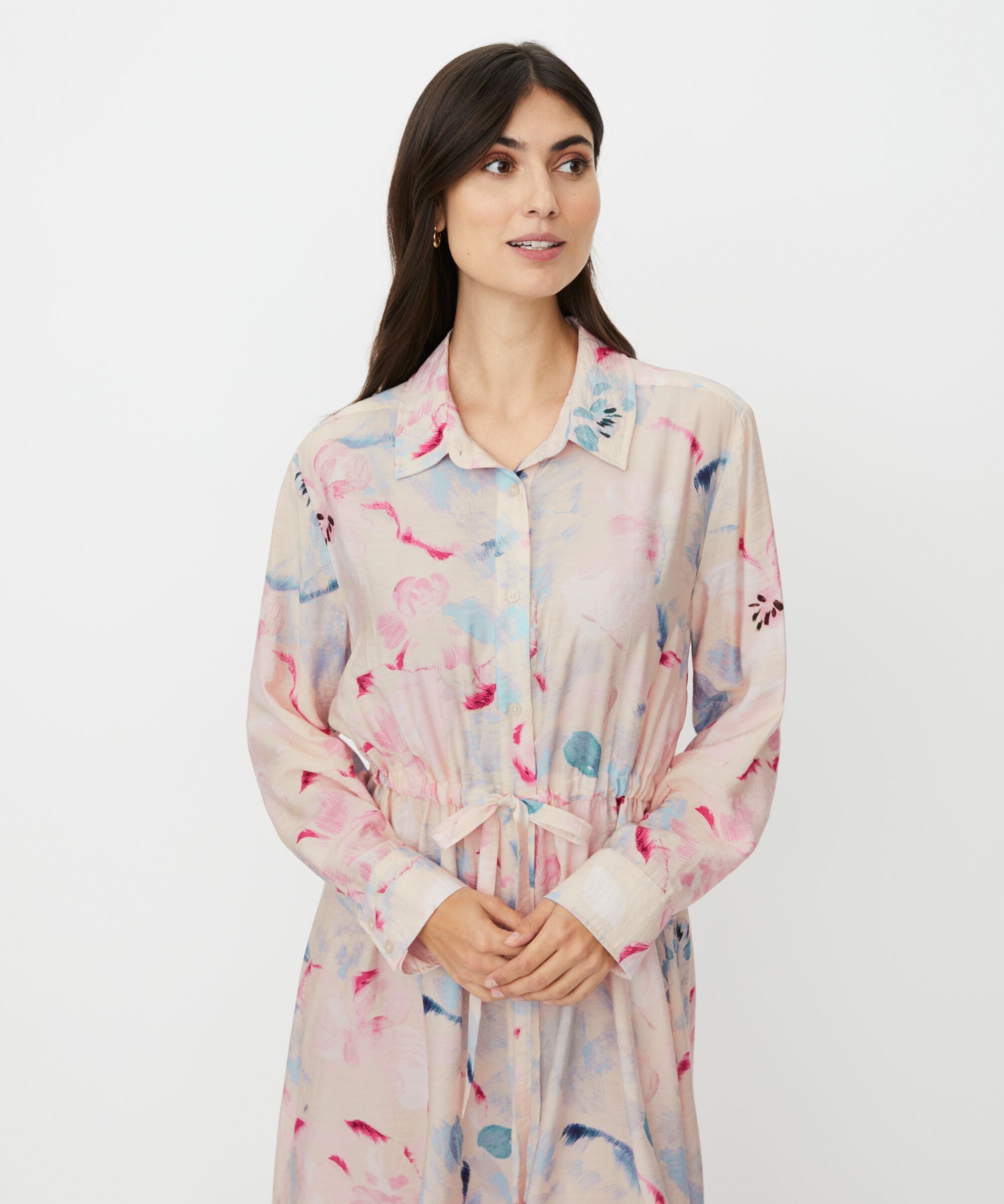 Soft viscose shirt dress with a dreamy floral print feels light and comfortable against the skin and falls beautifully along...