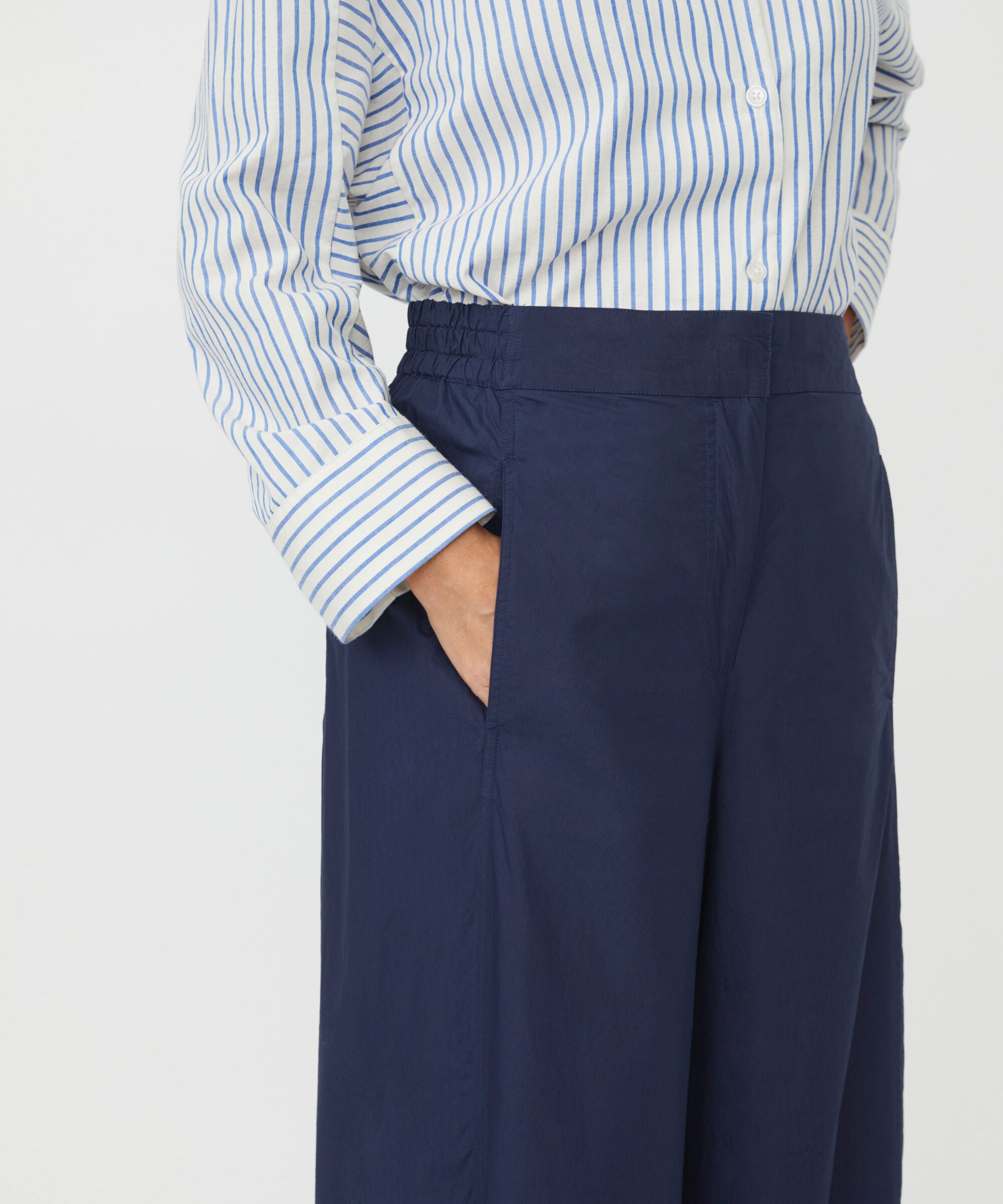 Elegant trousers in robust cotton poplin are designed for those who love a stylish look with comfort at its core....