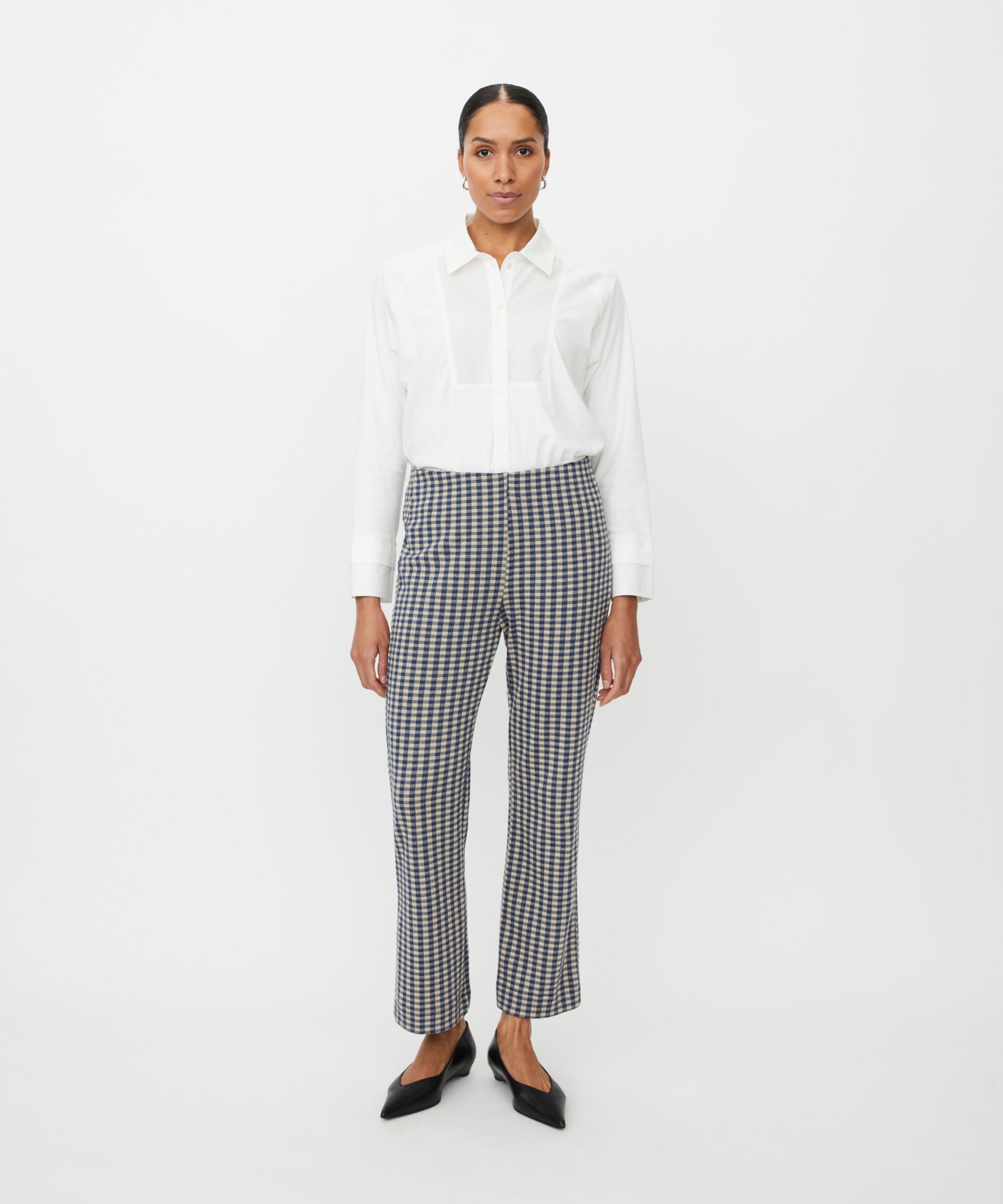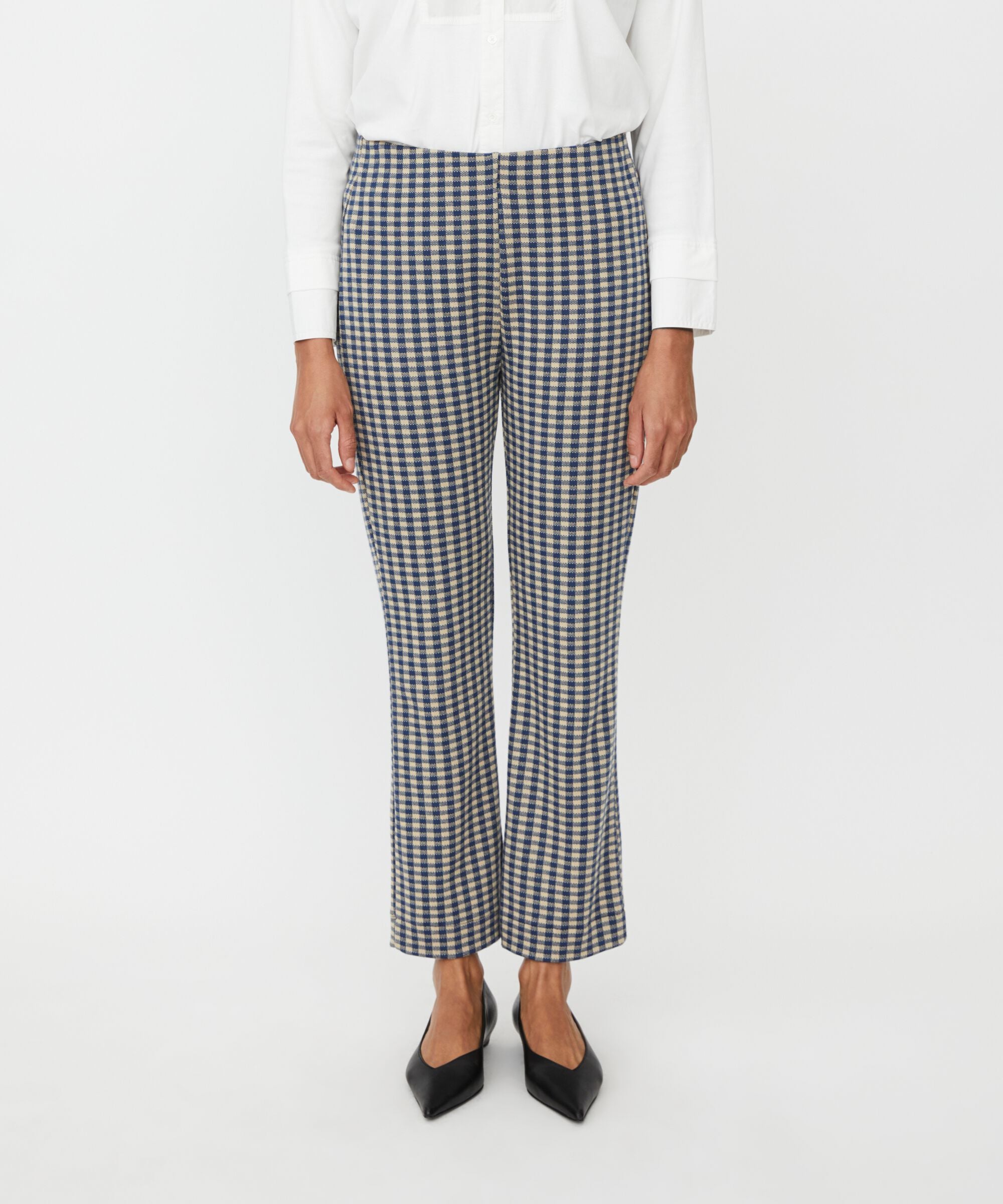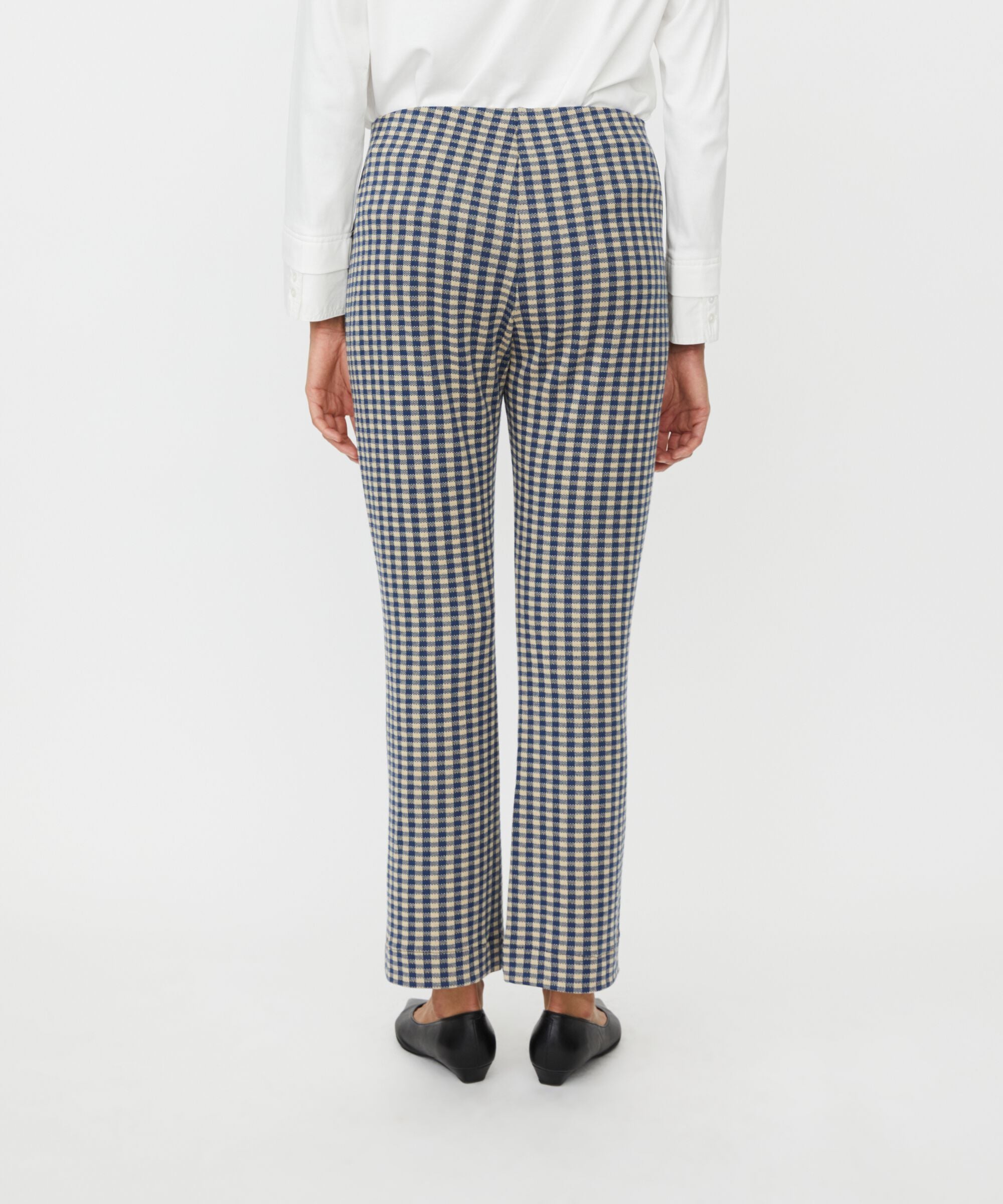 With these checkered trousers, you have endless styling possibilities. They are crafted from a soft, exclusive jersey fabric that drapes...