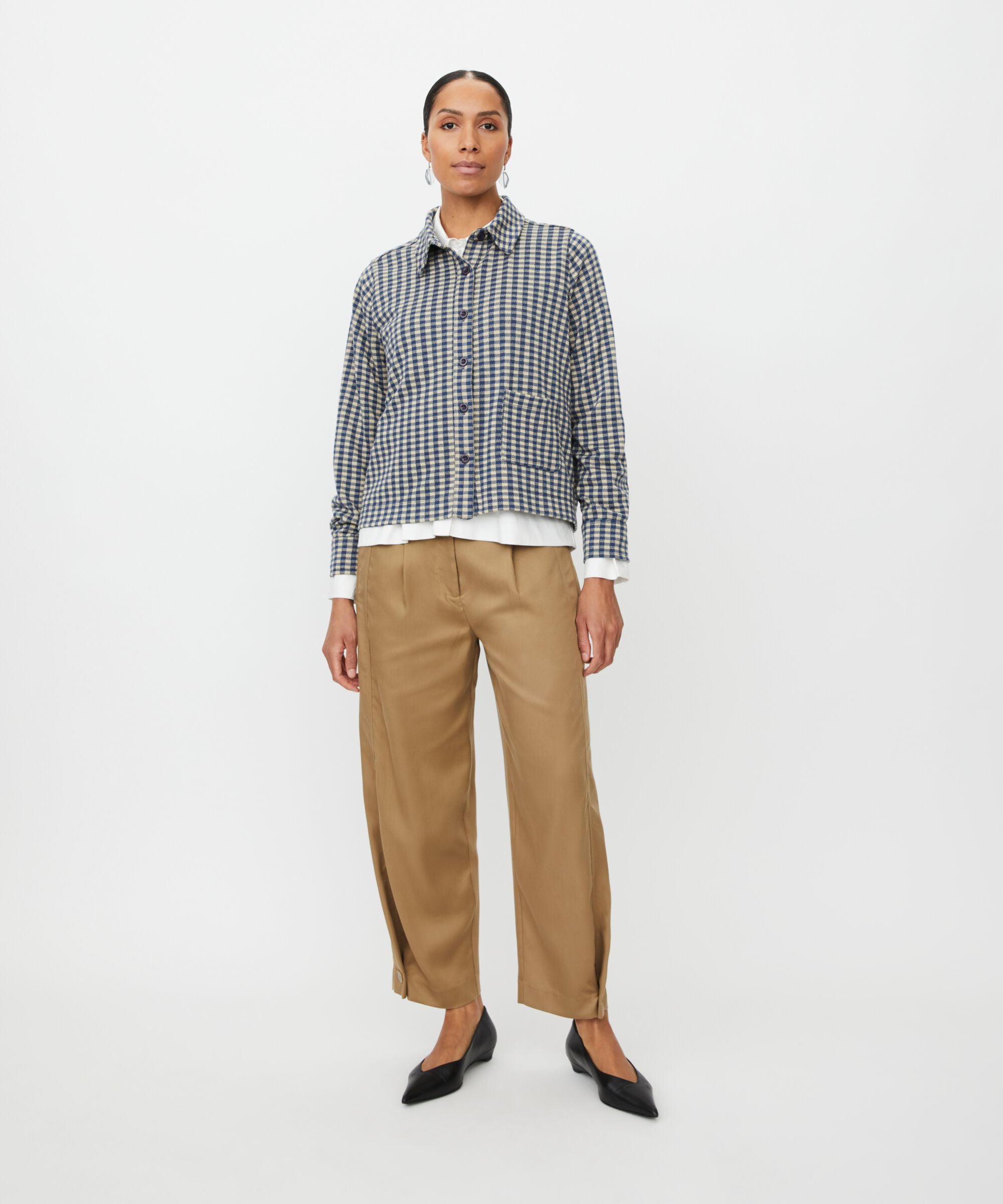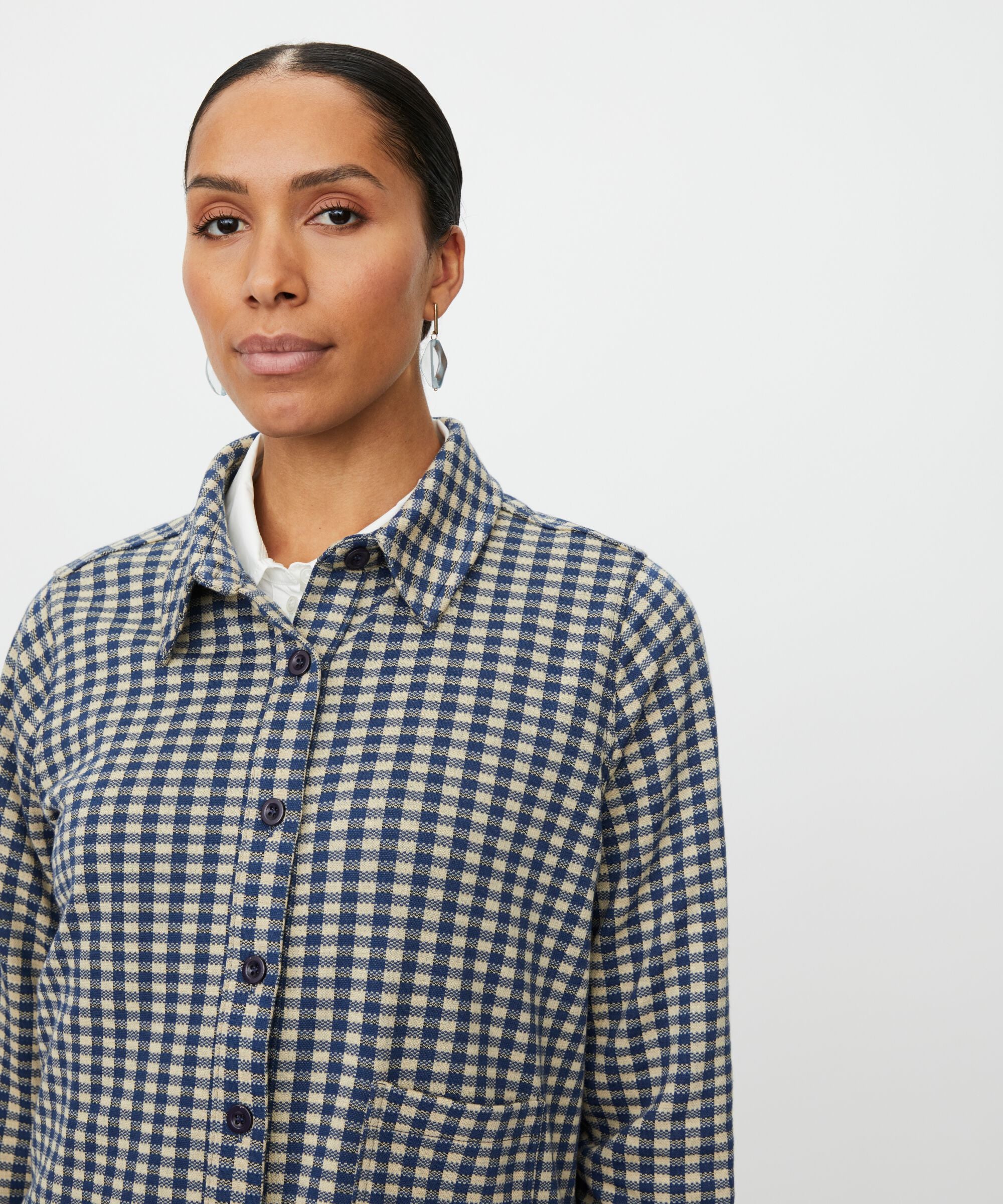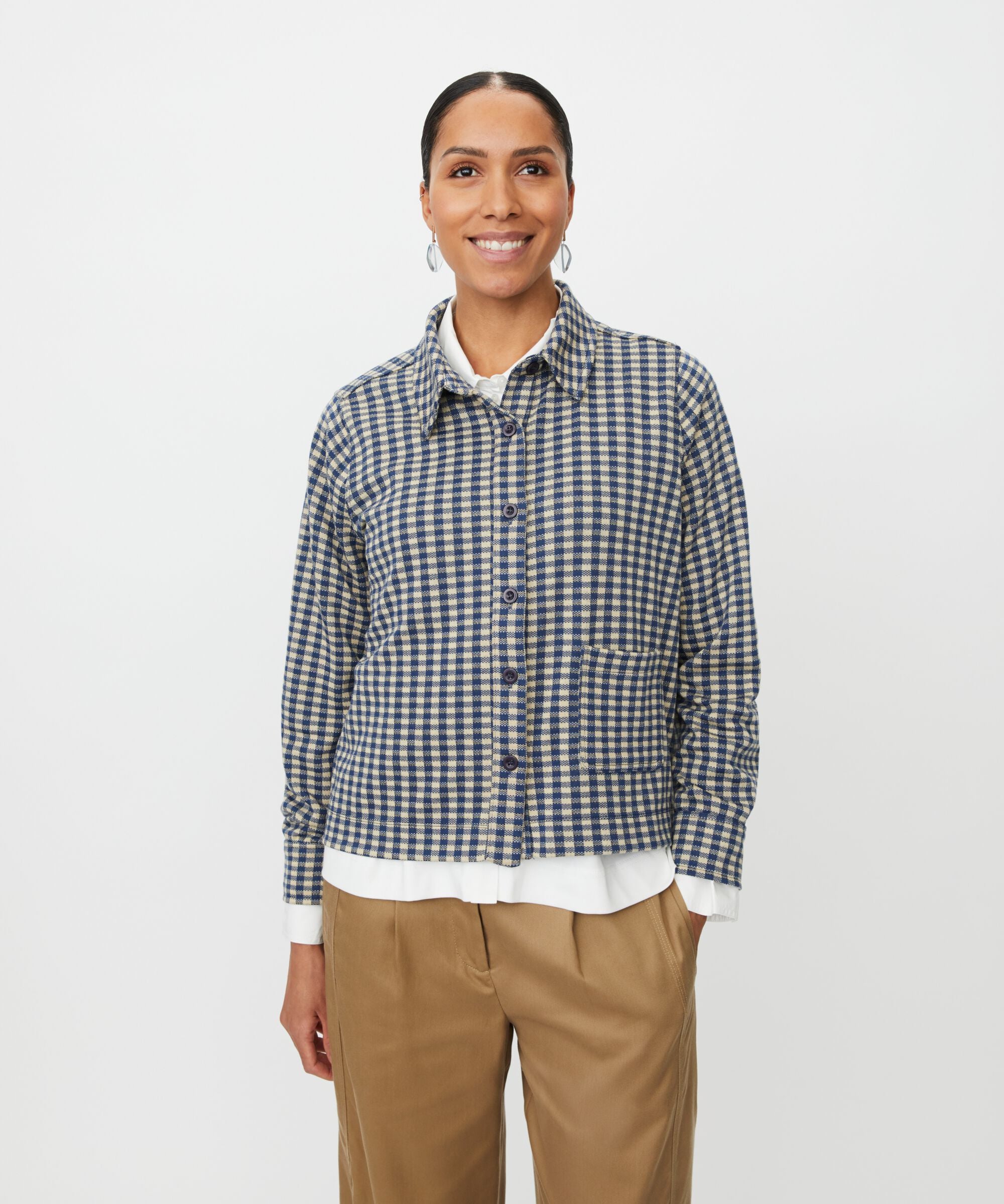Discover effortless sophistication with this checked shirt-jacket—a versatile piece that bridges casual and refined. Crafted from soft jersey fabric, its...