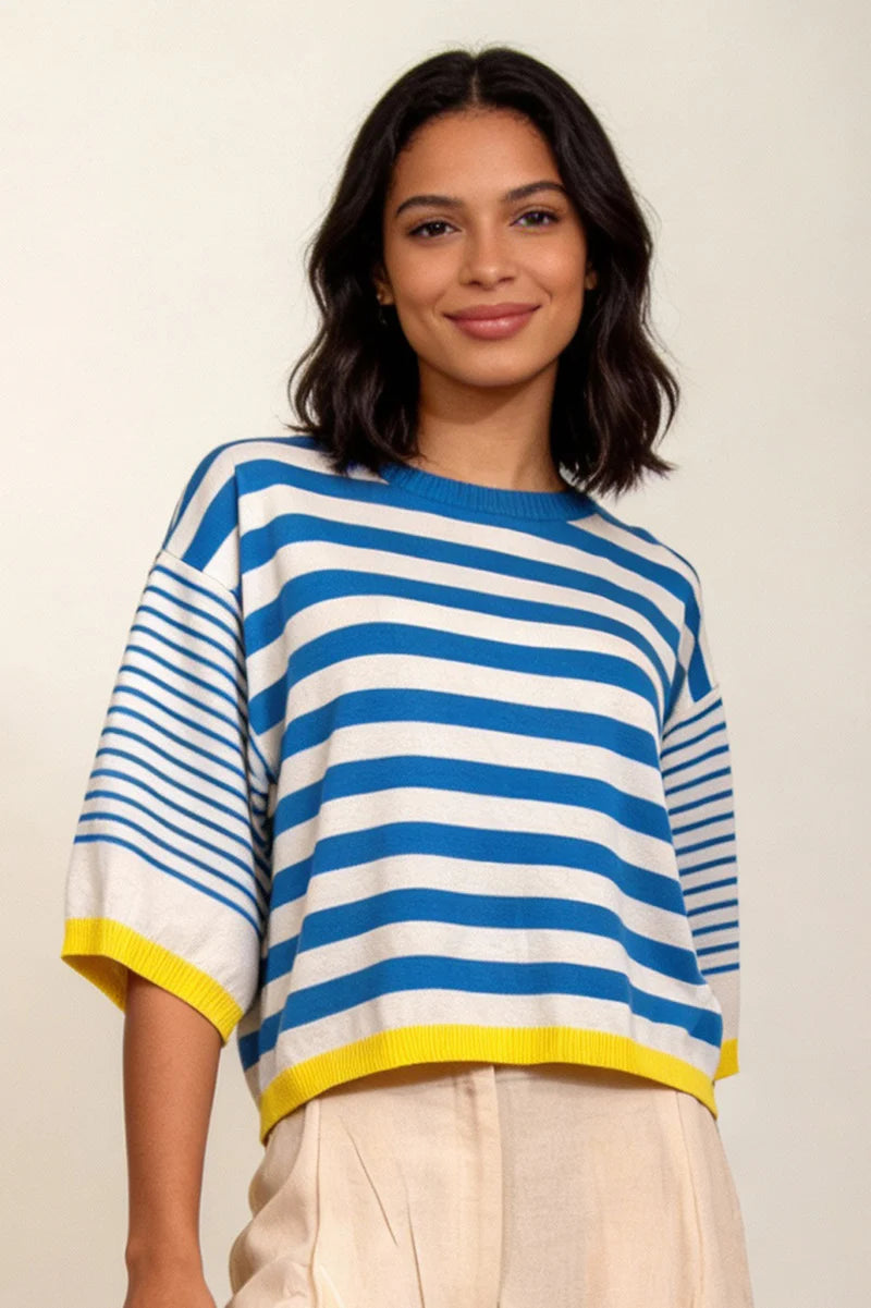 The Roma Stripe Knit in Blue is a wardrobe essential that combines playful style with everyday comfort. Featuring a distinctive...