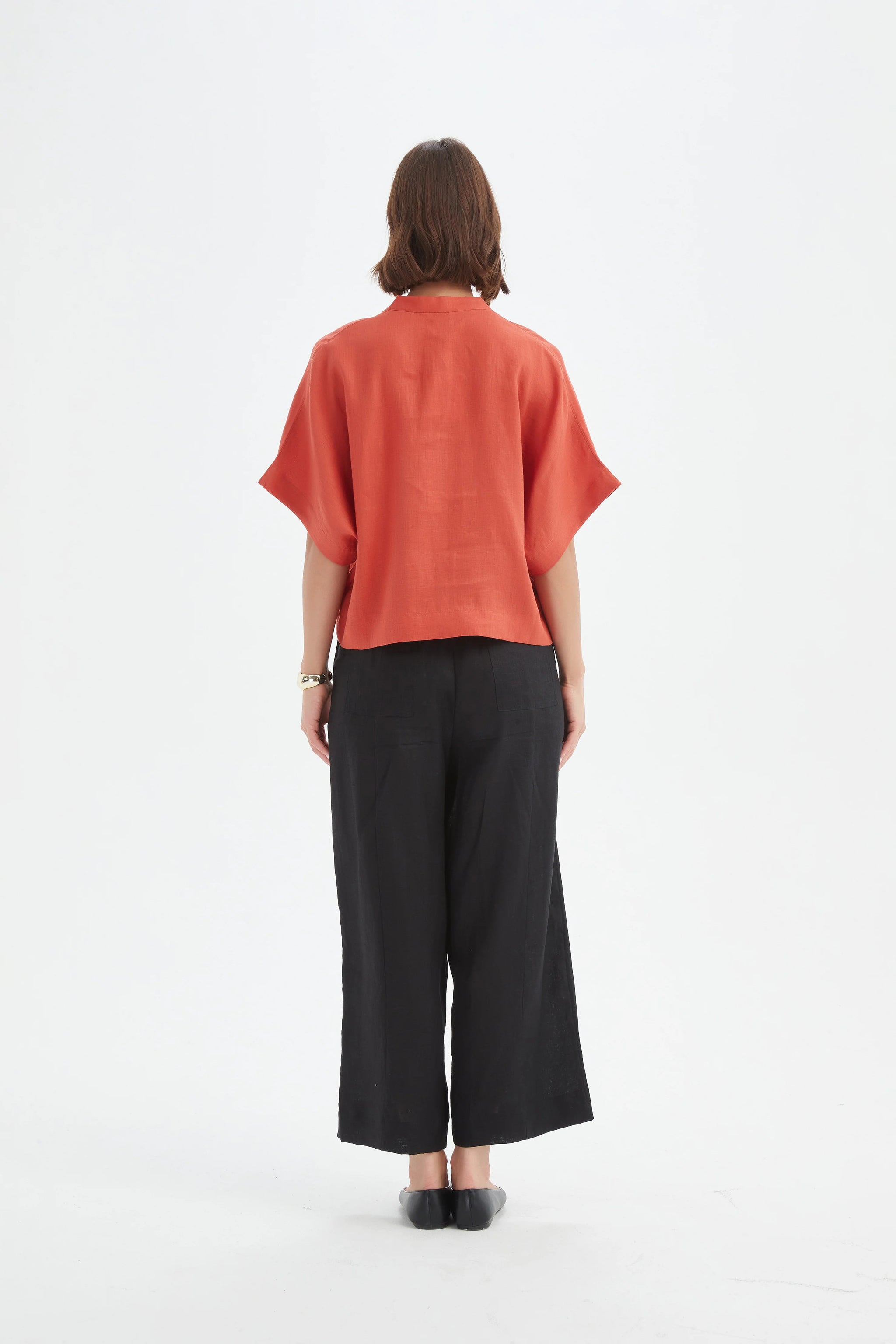 Discover effortless elegance with the Bishop Sleeve Shirring Top. Crafted from 100% French linen in Rust, this piece showcases intricate...