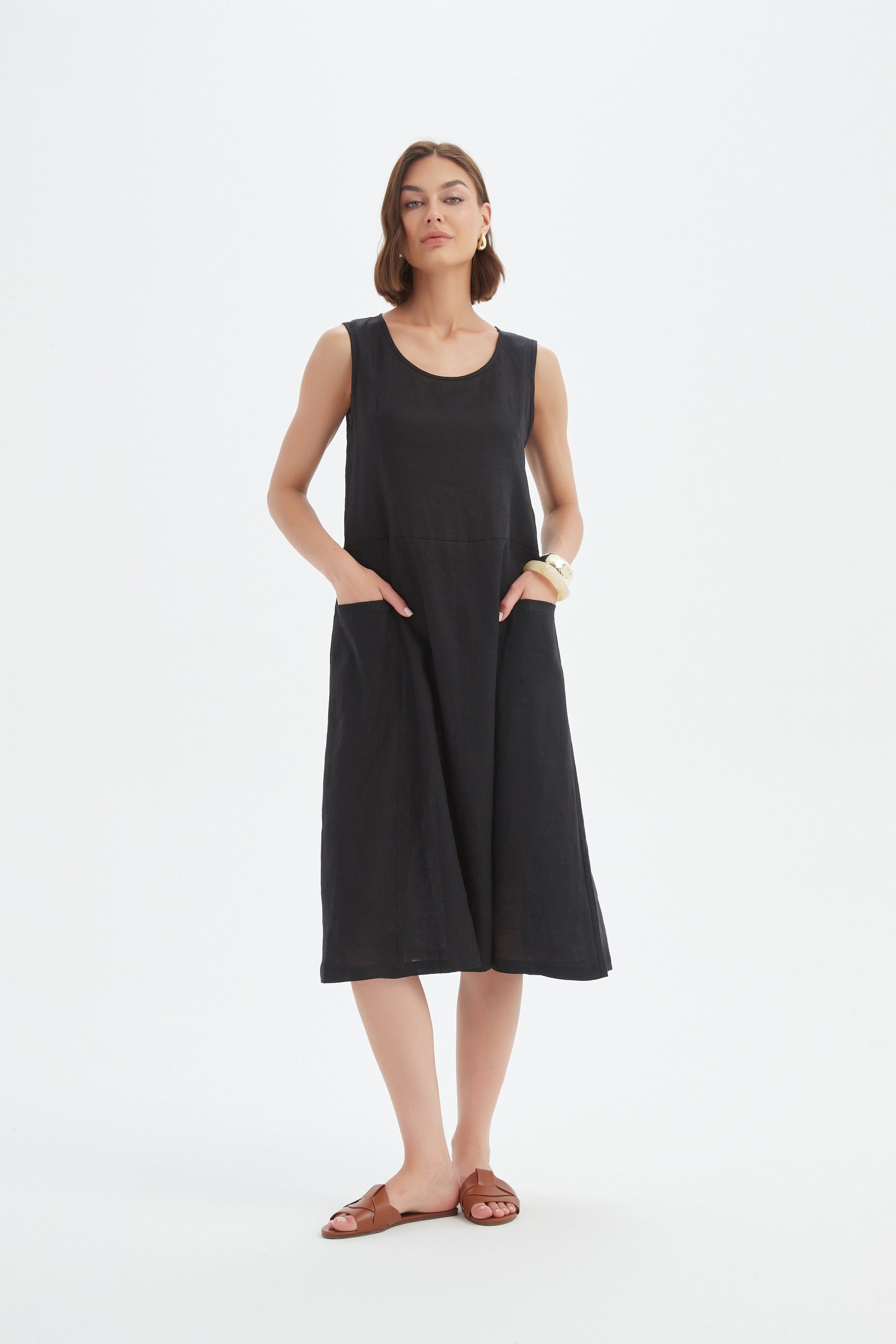 Timeless and versatile, this Tirelli linen dress transcends seasons with its sophisticated black palette. Constructed from breathable French linen, the...