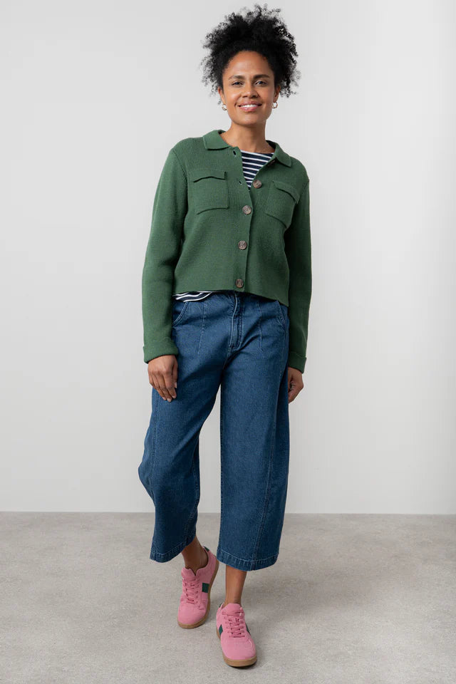 The Lily & Me Pine Green Chestnut Knit Jacket effortlessly blends the elegance of a cardigan with the structure of...