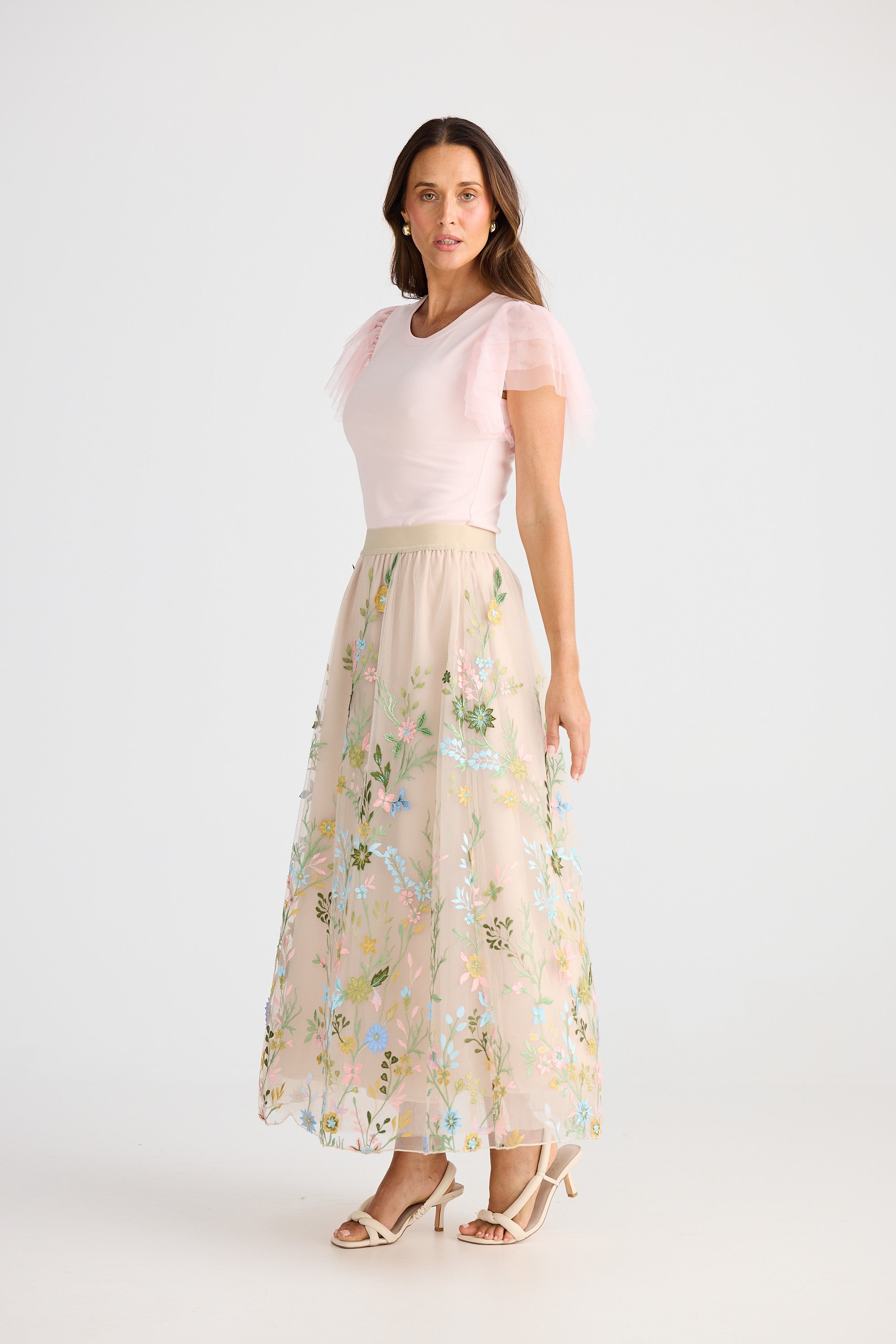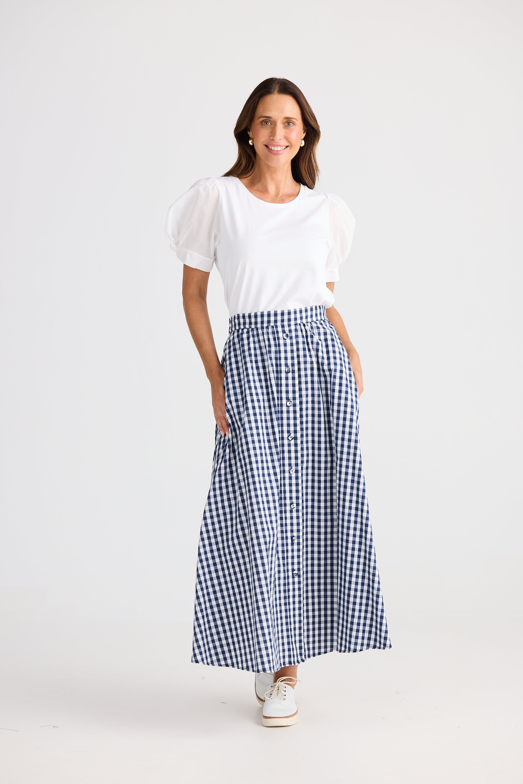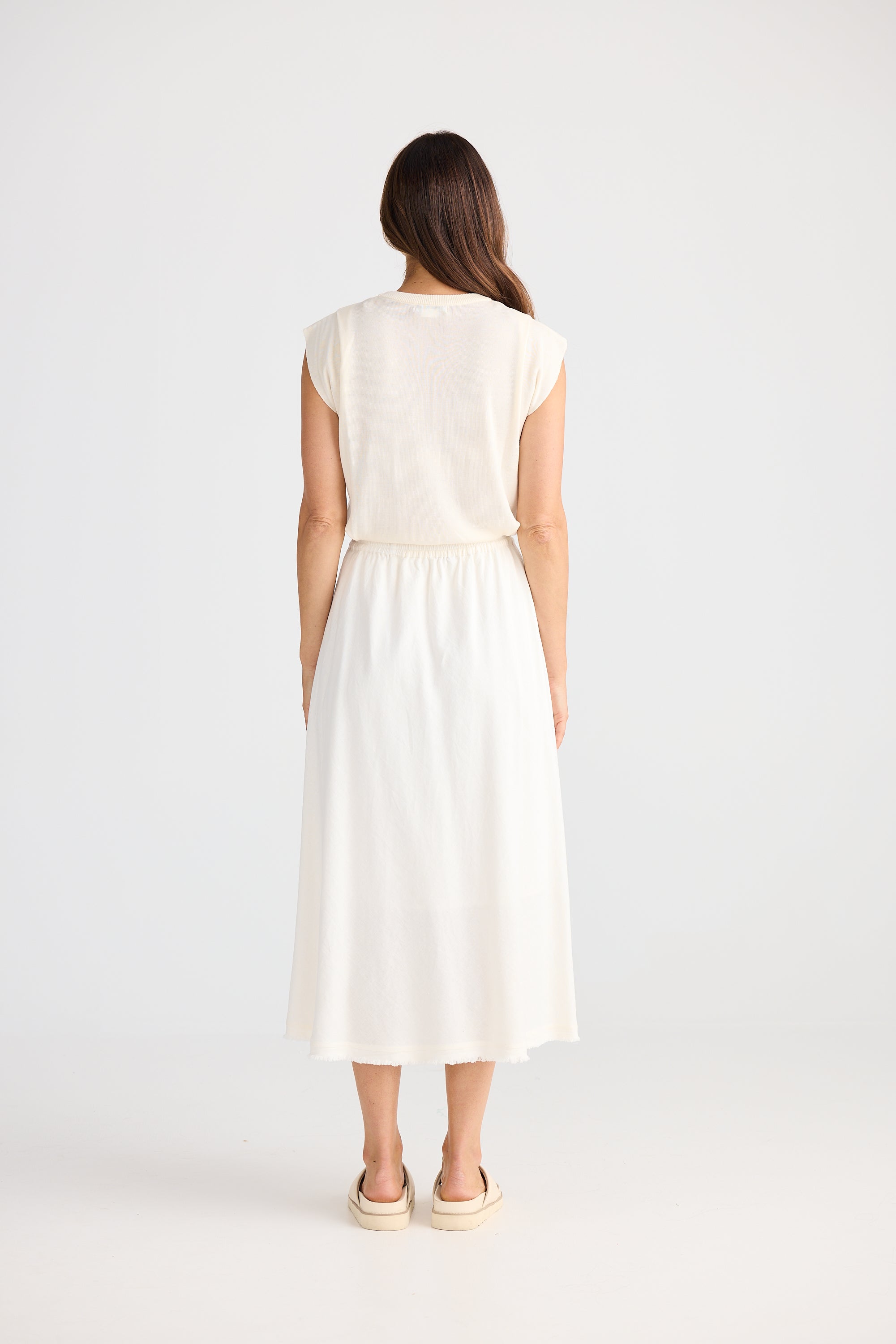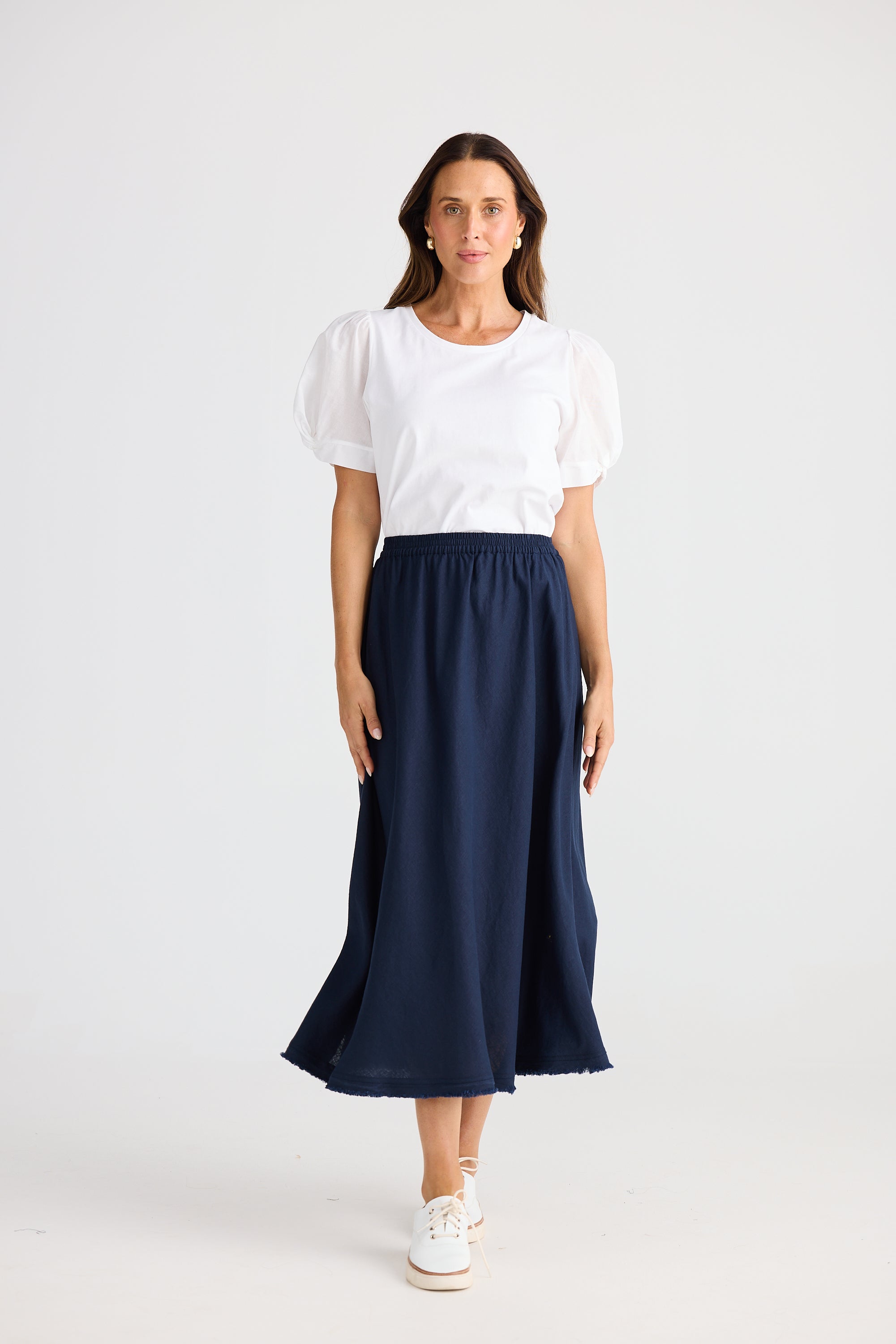 Crafted from a cotton and linen blend, the Holly Skirt offers a soft, lightweight feel with graceful drape—perfect for layering...