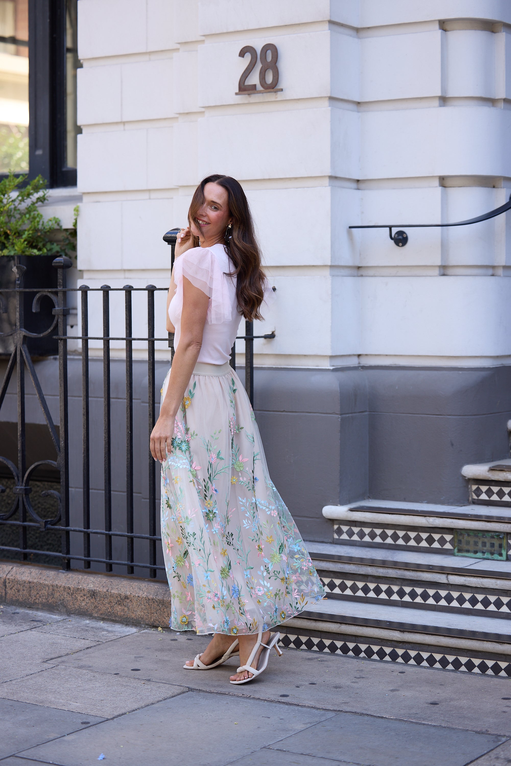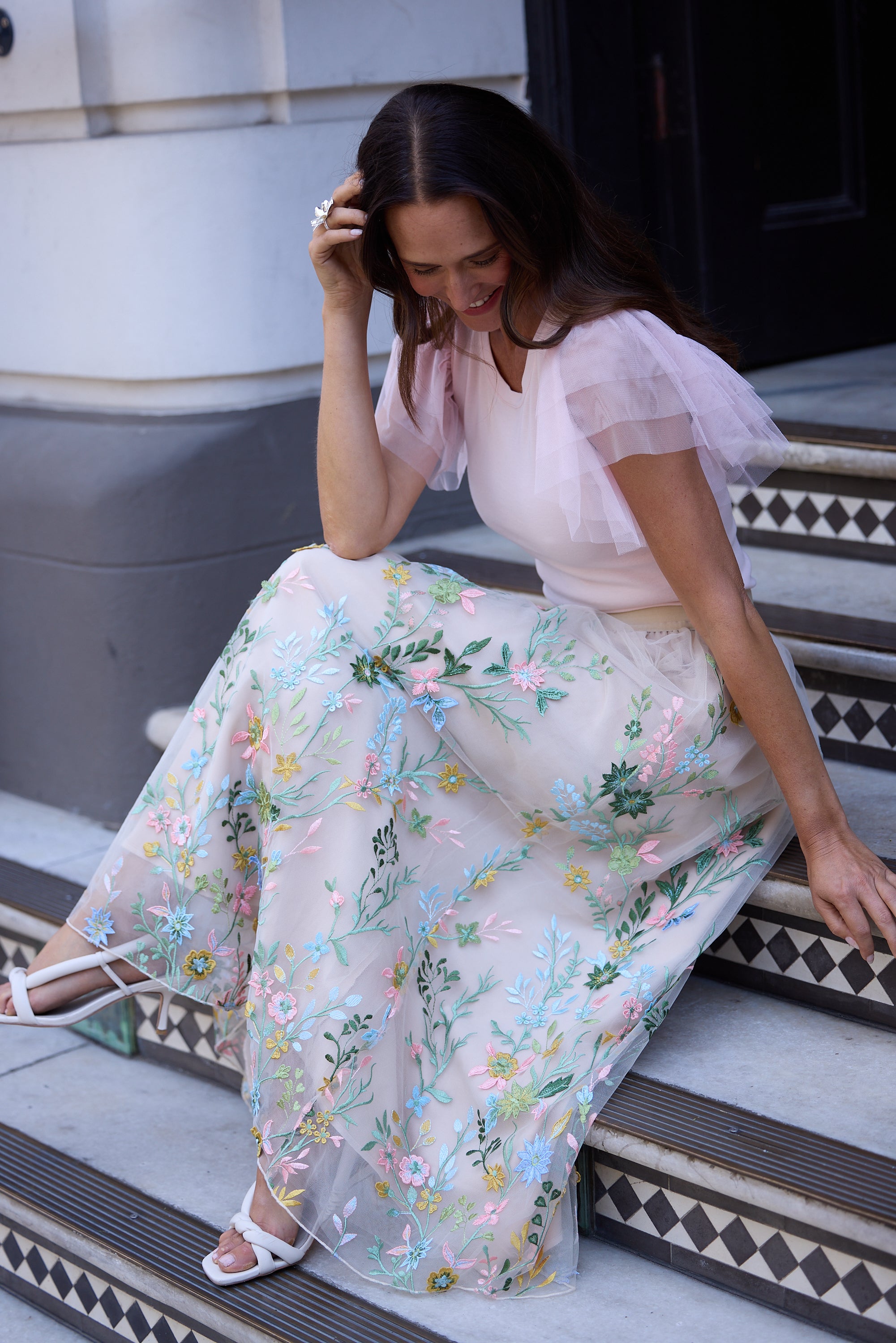 Embrace effortless elegance with this stunning maxi skirt, adorned with vibrant florals that capture the essence of a blooming garden....