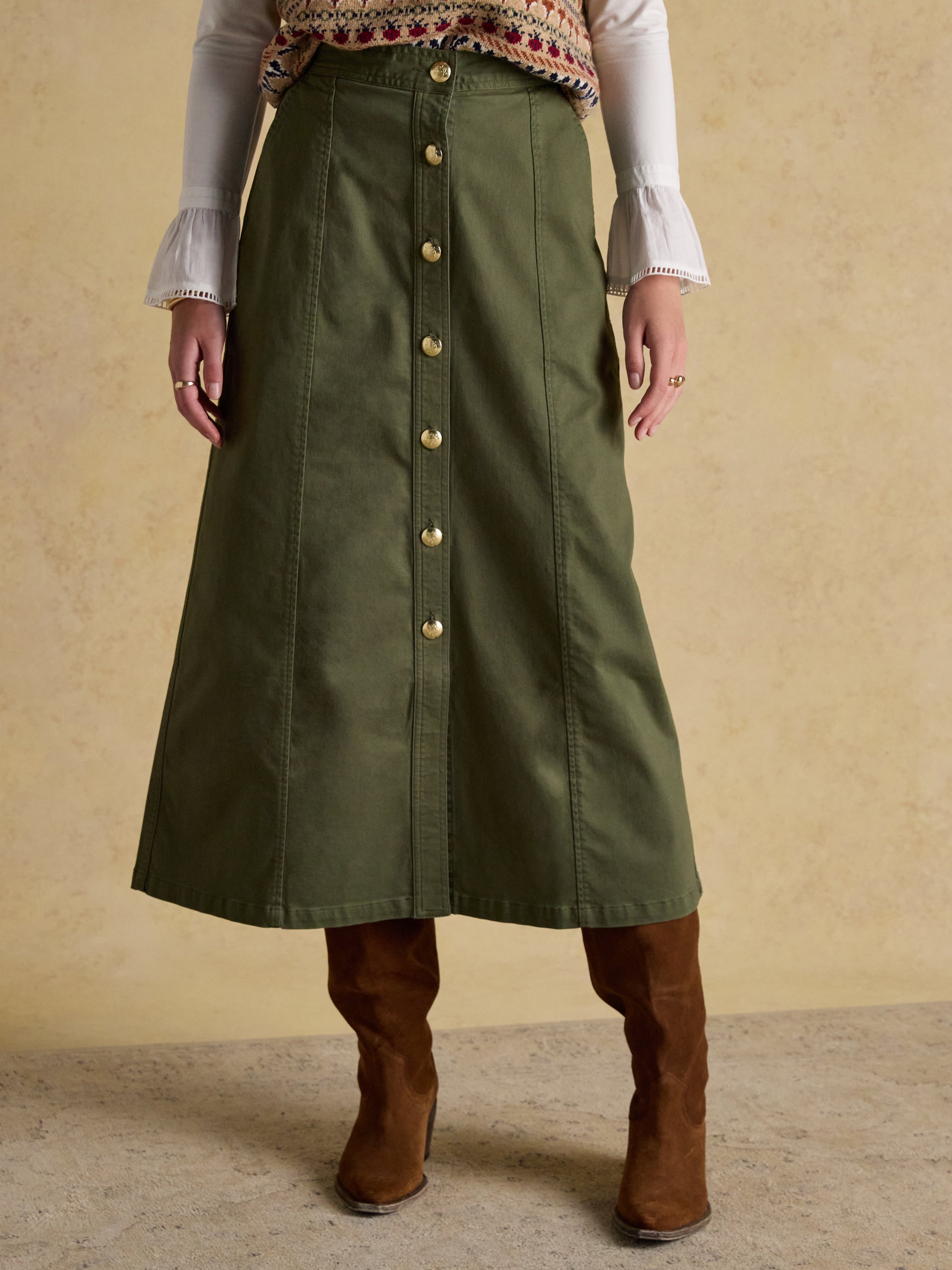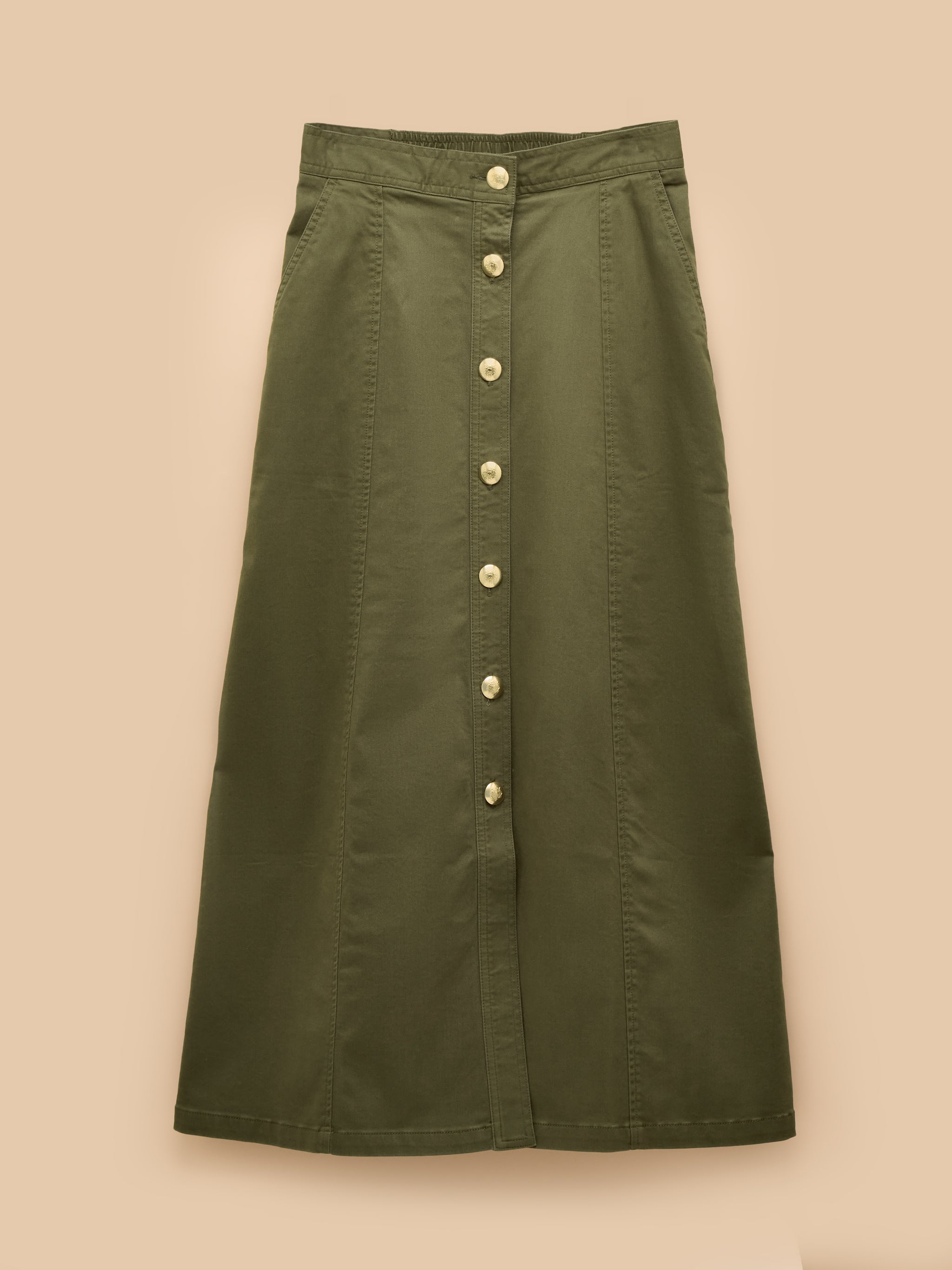 The Joules Twyla Khaki Green Midi Chino Skirt is your new go-to for playful, everyday style. Made from soft yet...