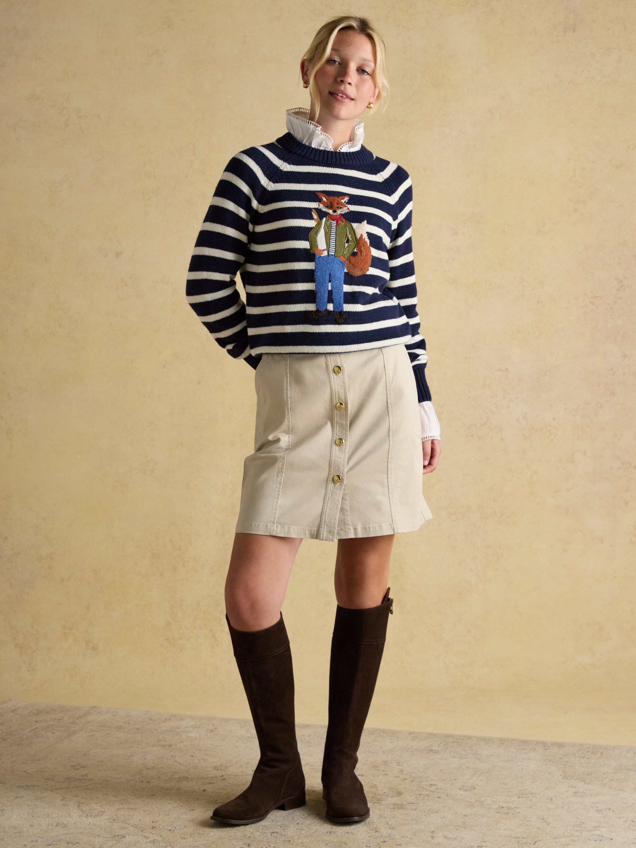 Add a fresh twist to your wardrobe with the Joules Loxley Chino Ivory Skirt. Made from a soft cotton-rich fabric,...