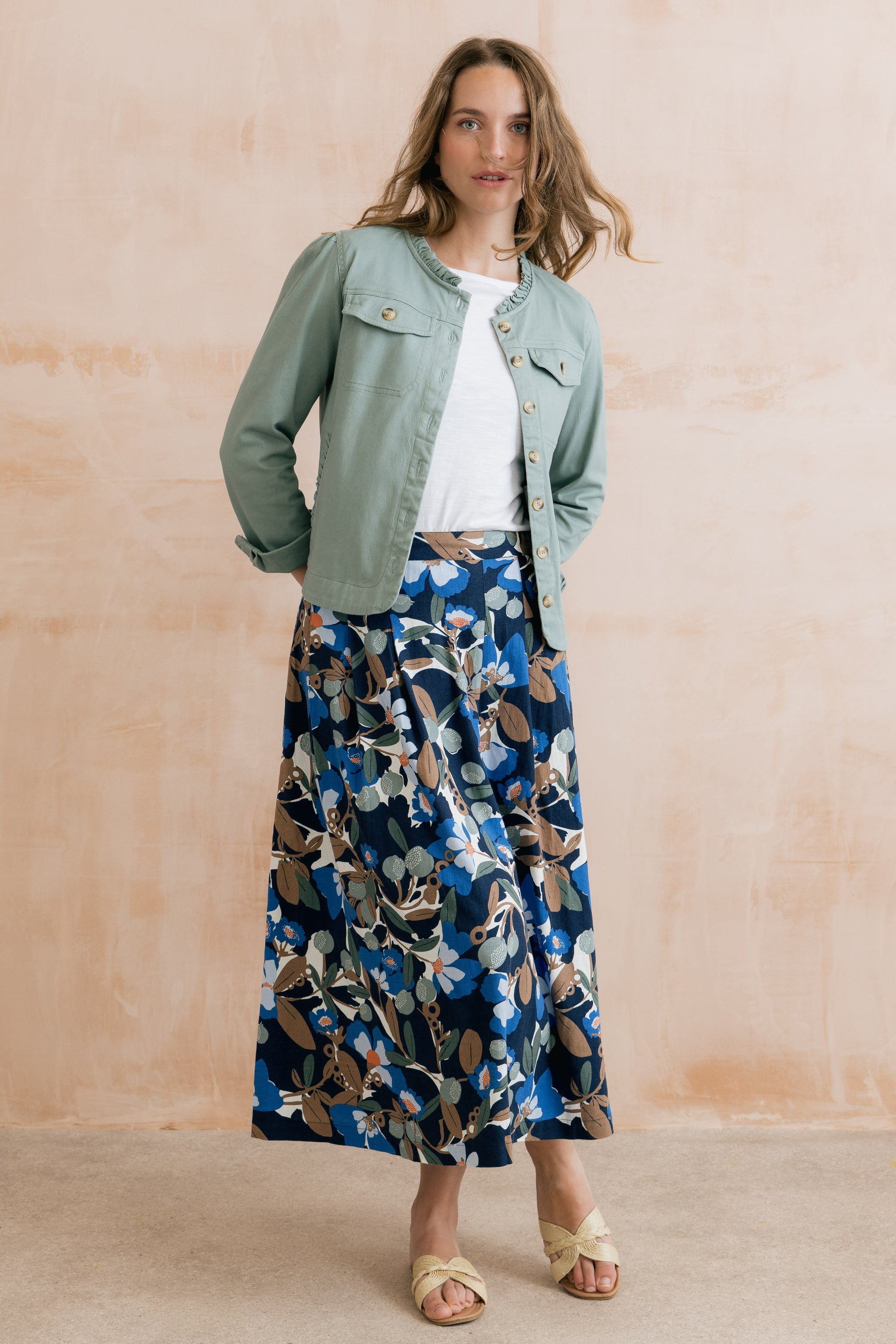 The Evie Midi Skirt combines comfort with contemporary style in sustainable Ecovero viscose. Featuring a flat front and elasticated back...