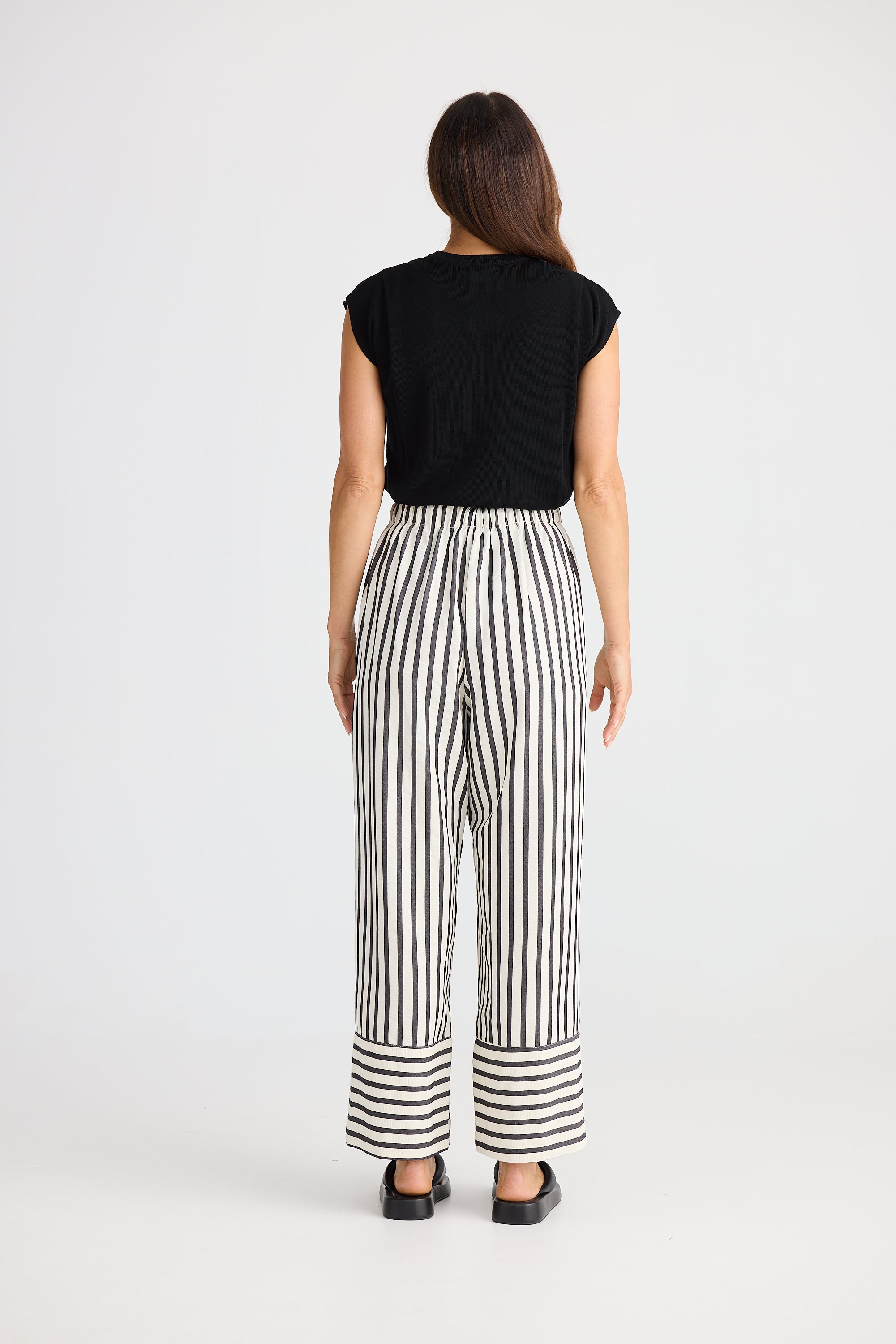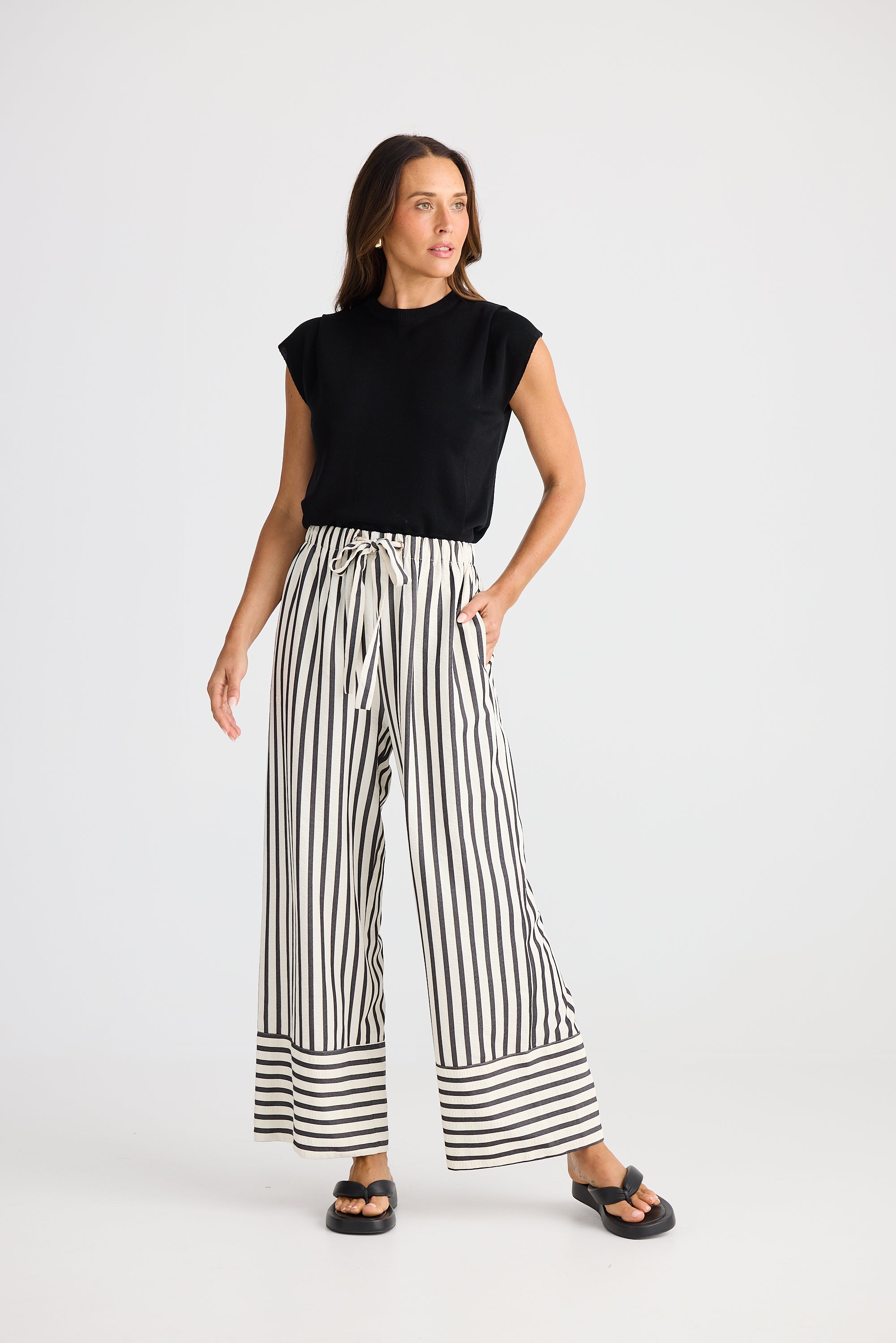 Elevate your everyday wardrobe with the Brave + True Portia Pant in Black Stripe. Designed with a relaxed wide-leg silhouette,...