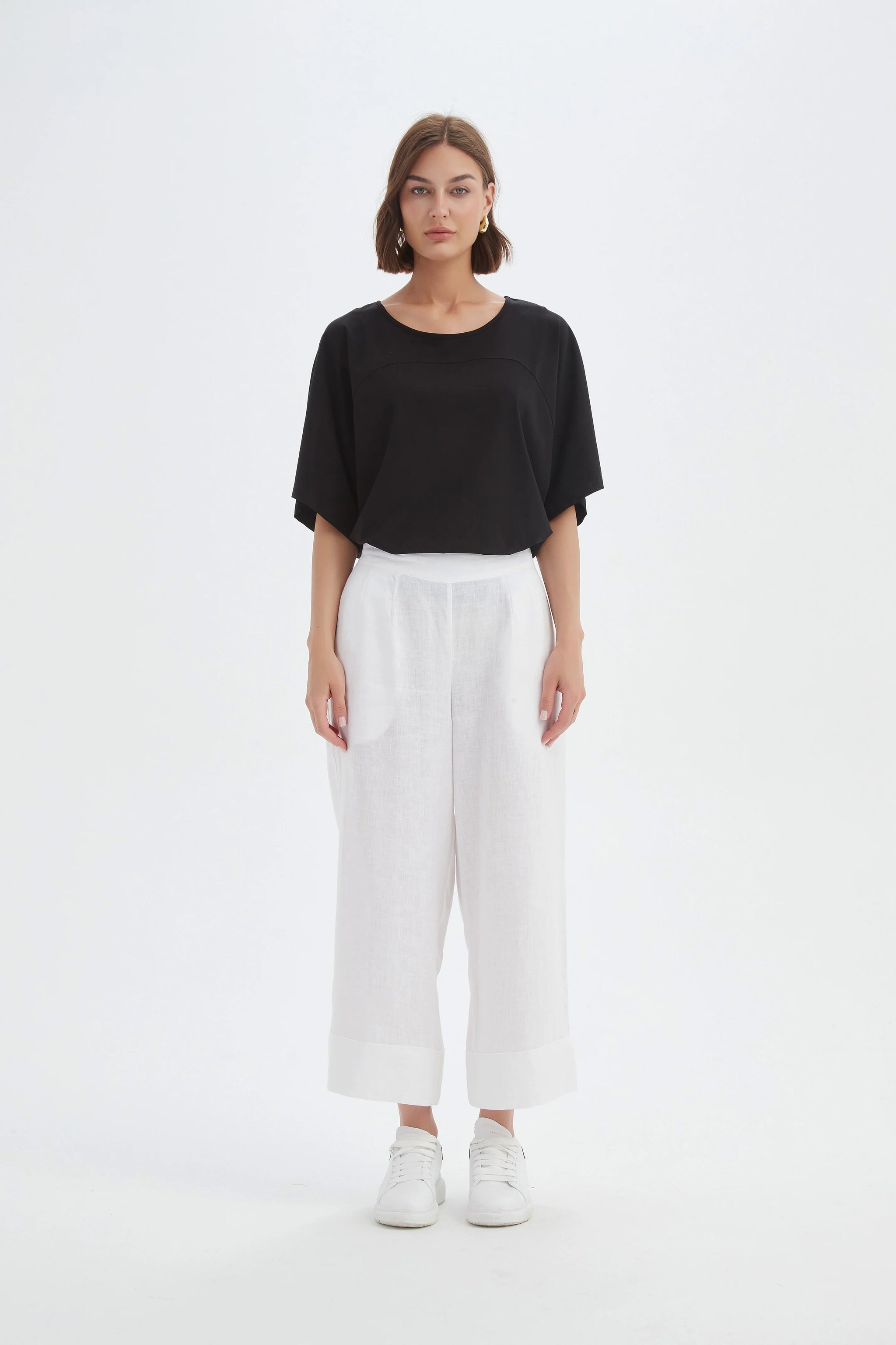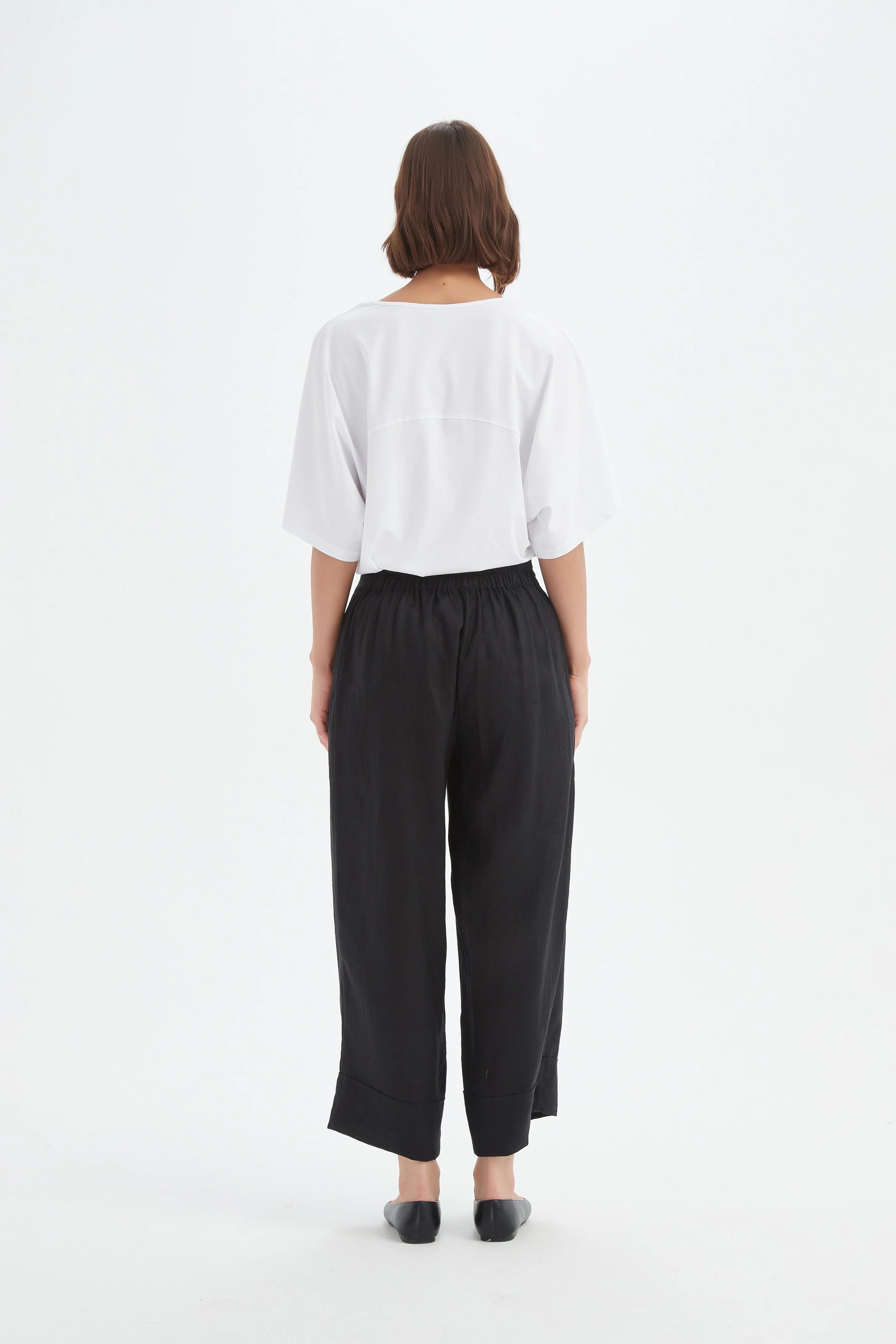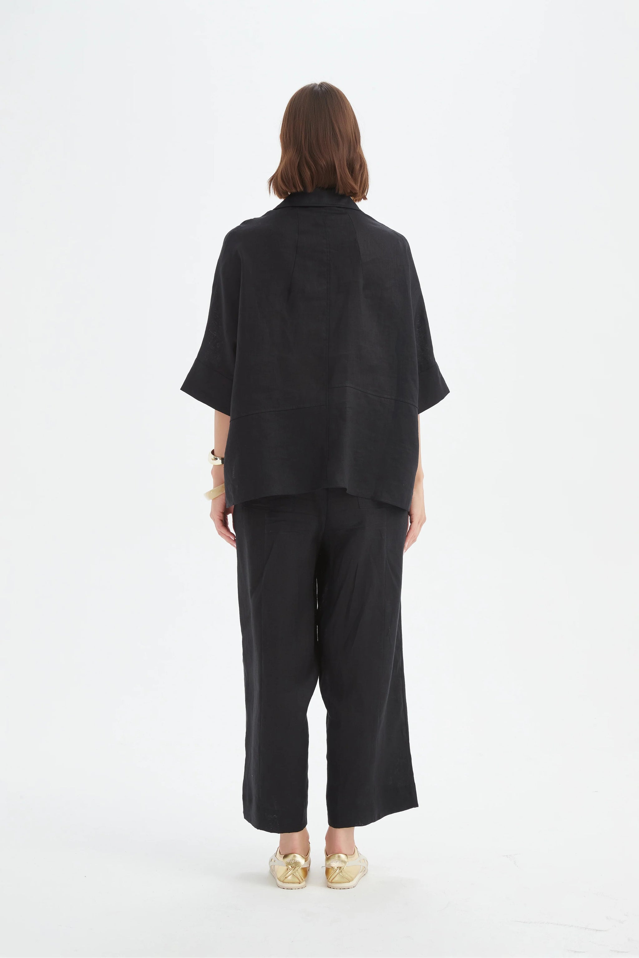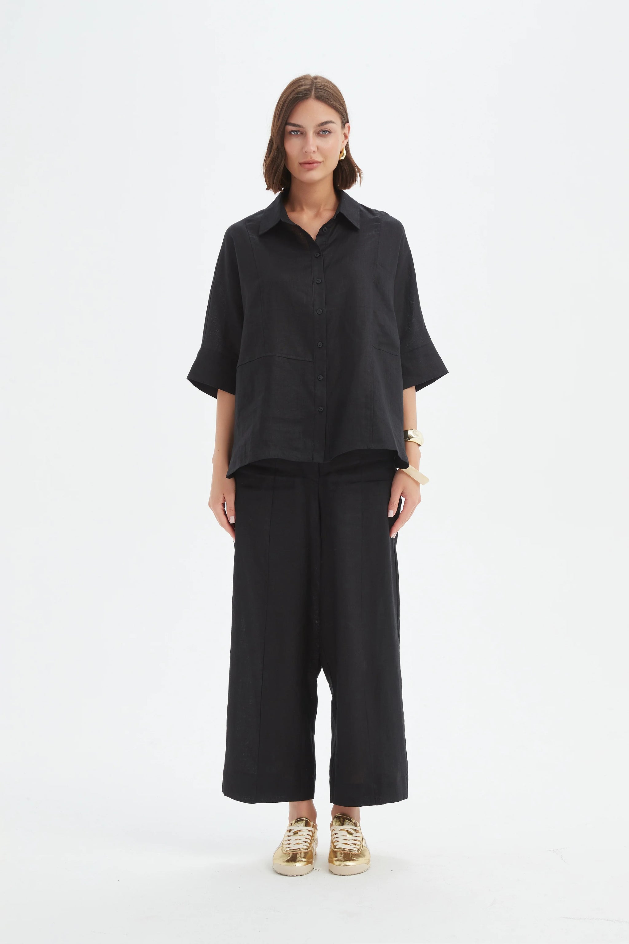 Discover understated sophistication with these Black Linen Wide Leg Pants from Tirelli. Constructed from premium 100% French linen, they combine...