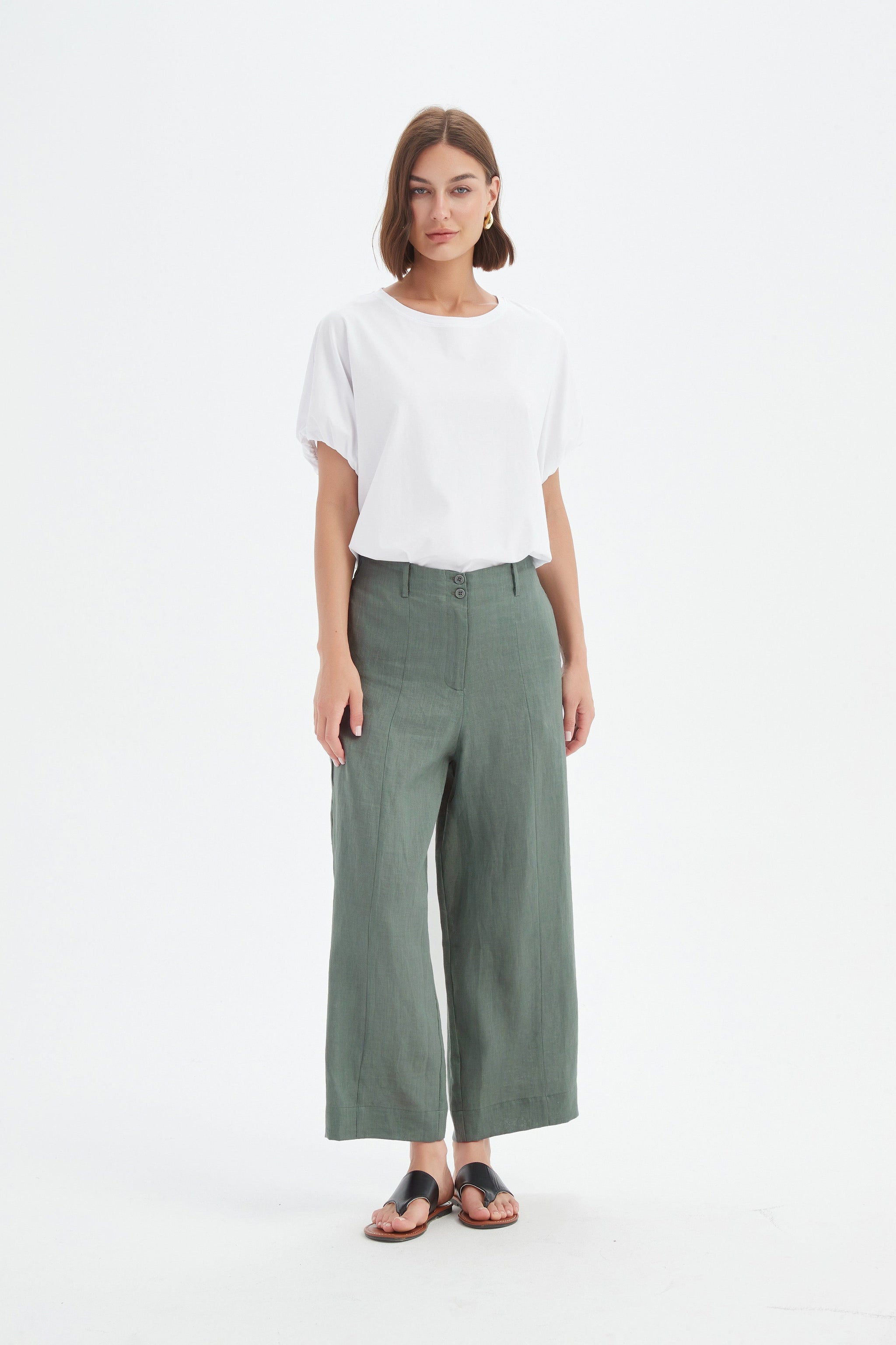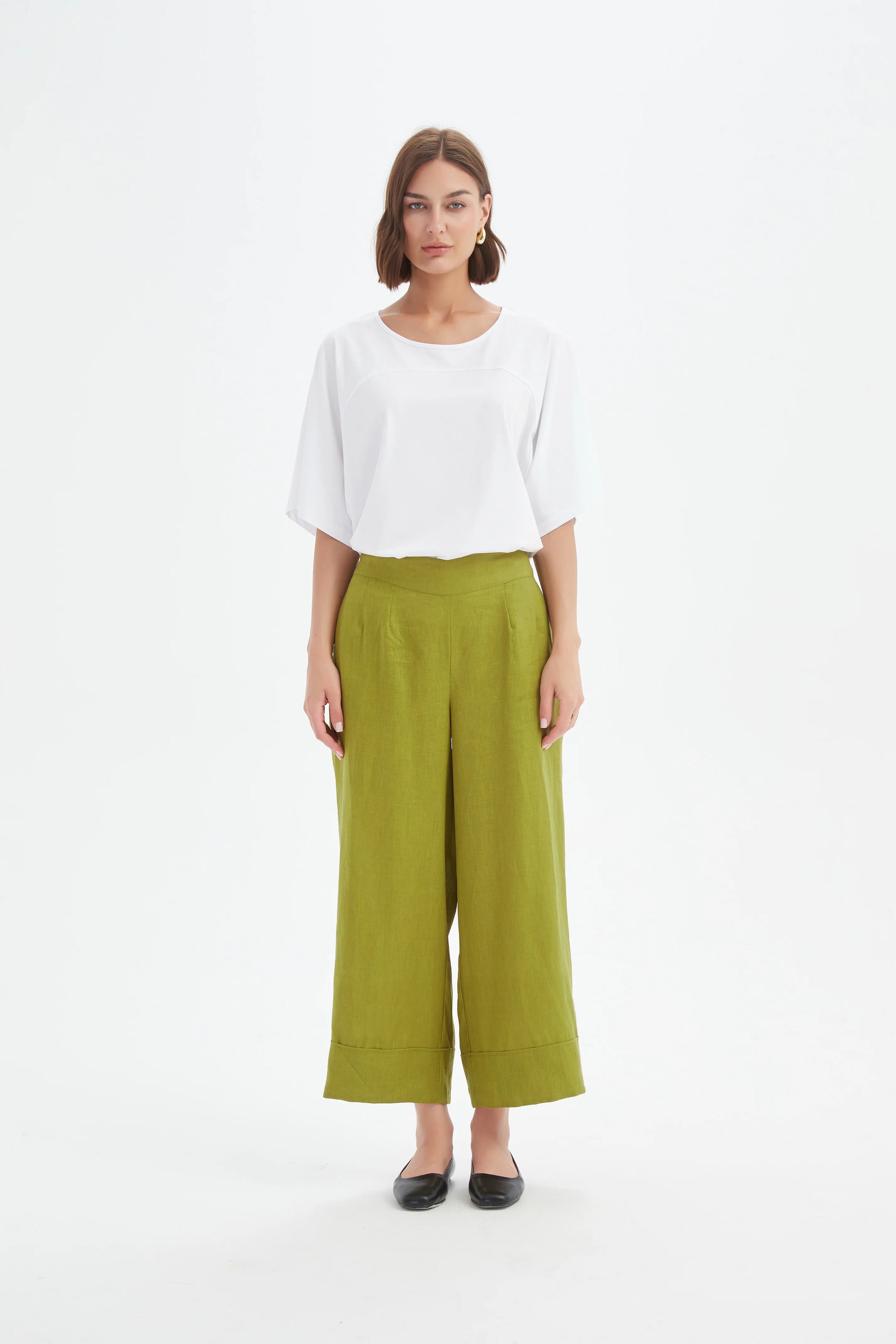 Discover understated sophistication with these Chartreuse Linen Wide Leg Pants from Tirelli. Constructed from premium 100% French linen, they combine...
