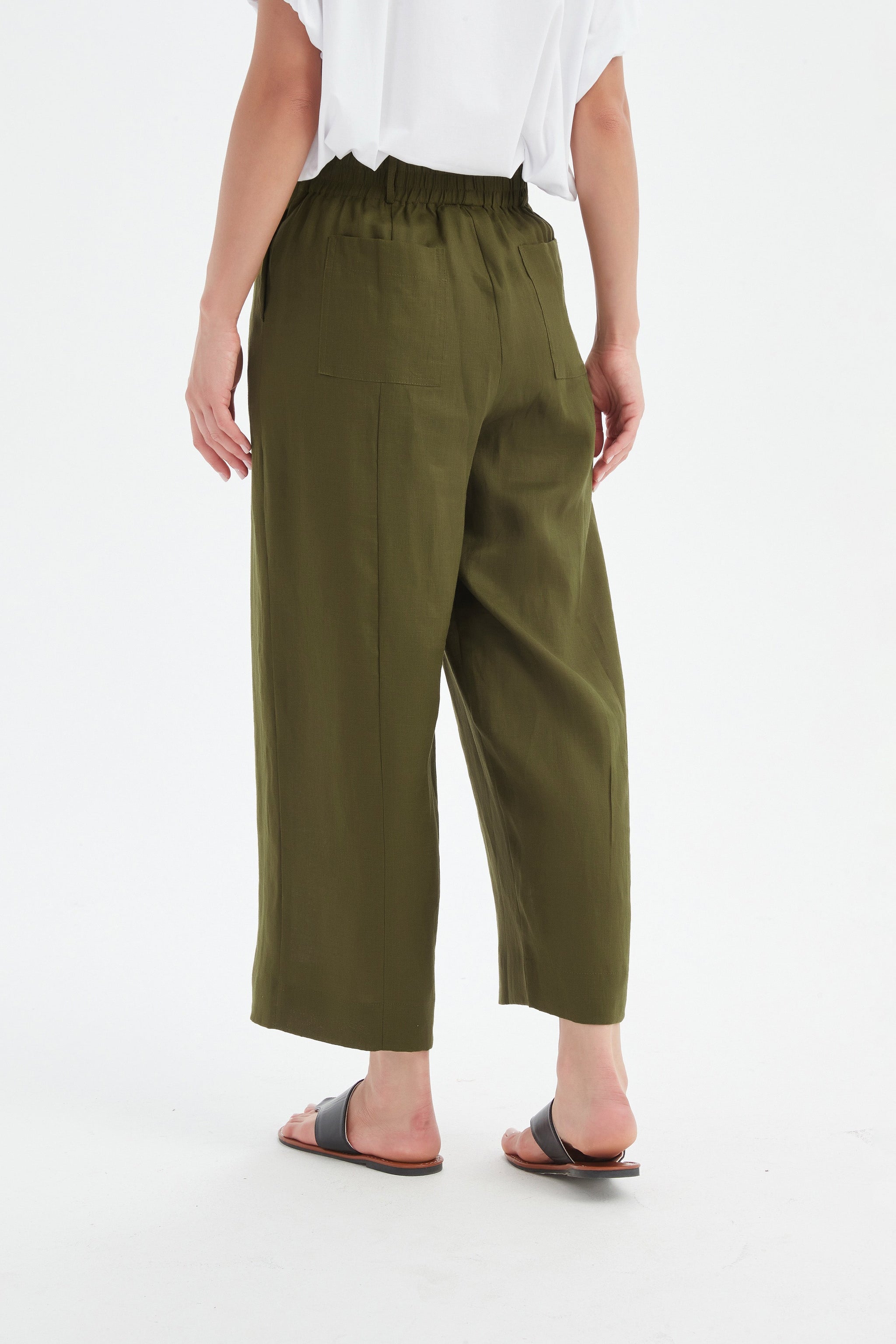 Effortlessly chic Eden Culottes in warm sand linen. Straight-leg silhouette with a stretchy back waistband ensures all-day comfort, while the...