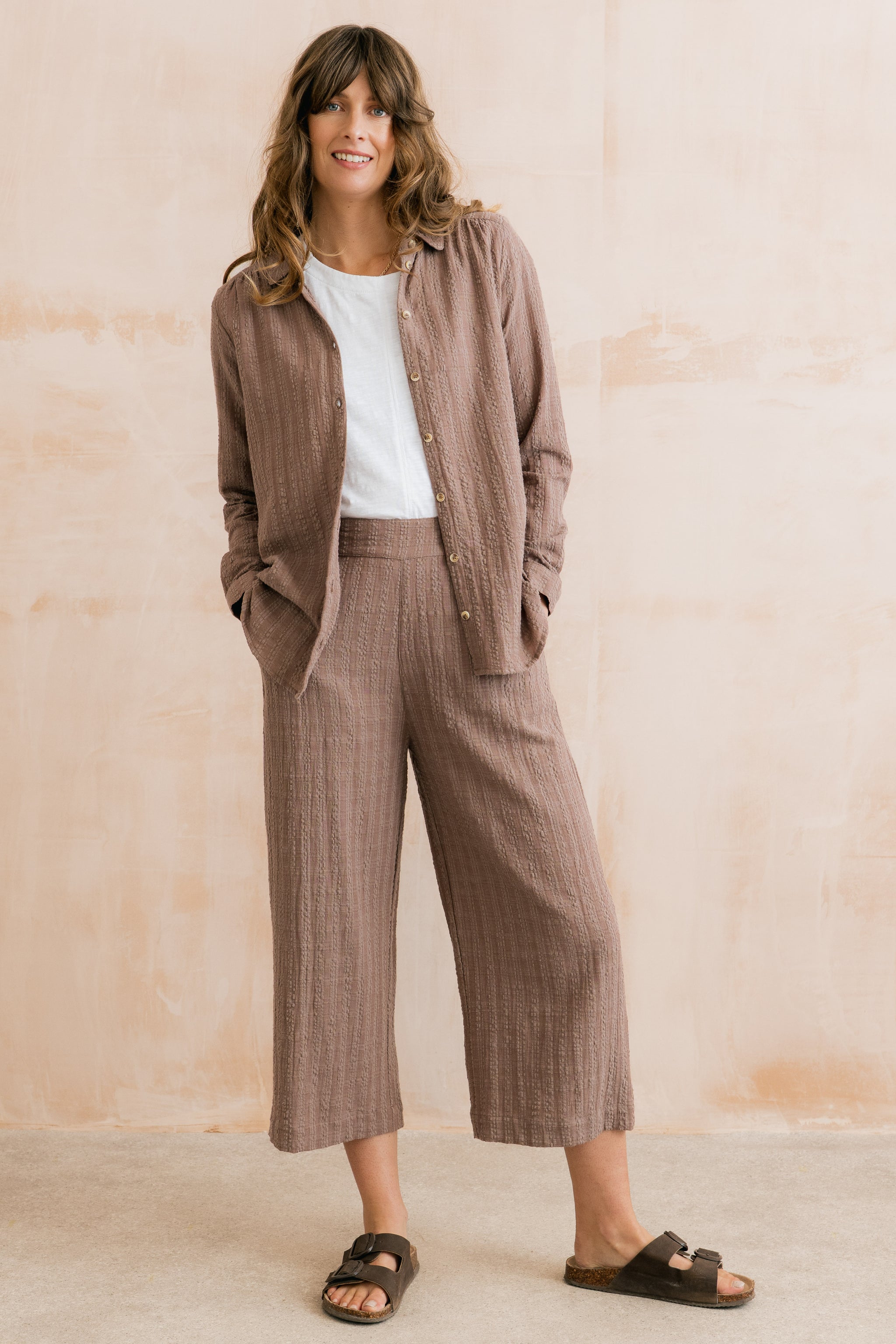 Crafted from lightweight plain seersucker, these Lily & Me trousers deliver effortless summer style in a soft mocha tone. The...